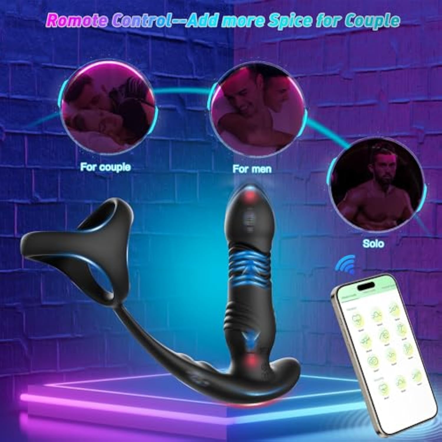 - ?3 In 1 Anal Vibrator Sex Toys?This Anal Toys Combines A Prostate Massager, Anal Plug Vibrator And Cock Ring In One. Thrusting And Vibrating Male Sex Toy Finds And Hits Your P-Spot With Amazing Stimulation, Vibrates The Perineum Outside Of The Rippling