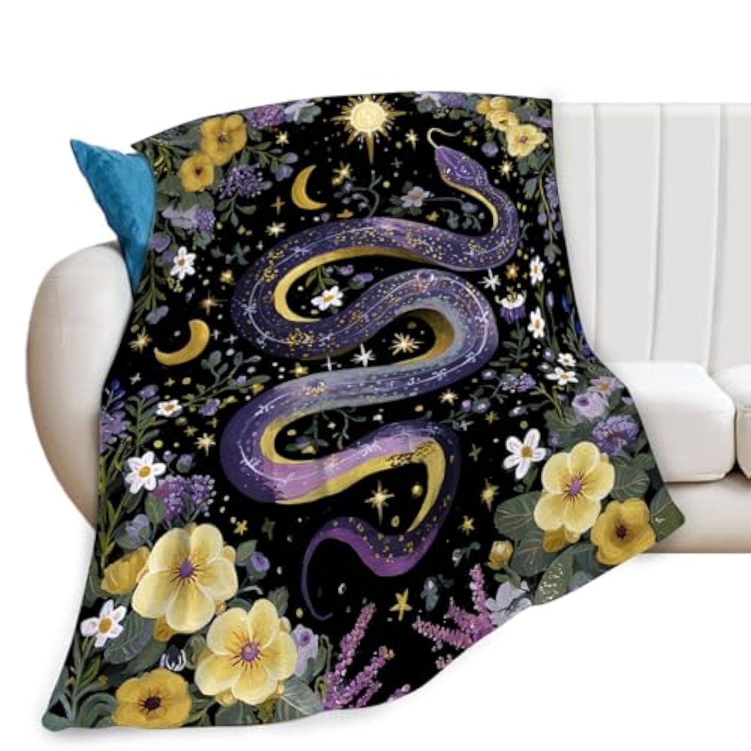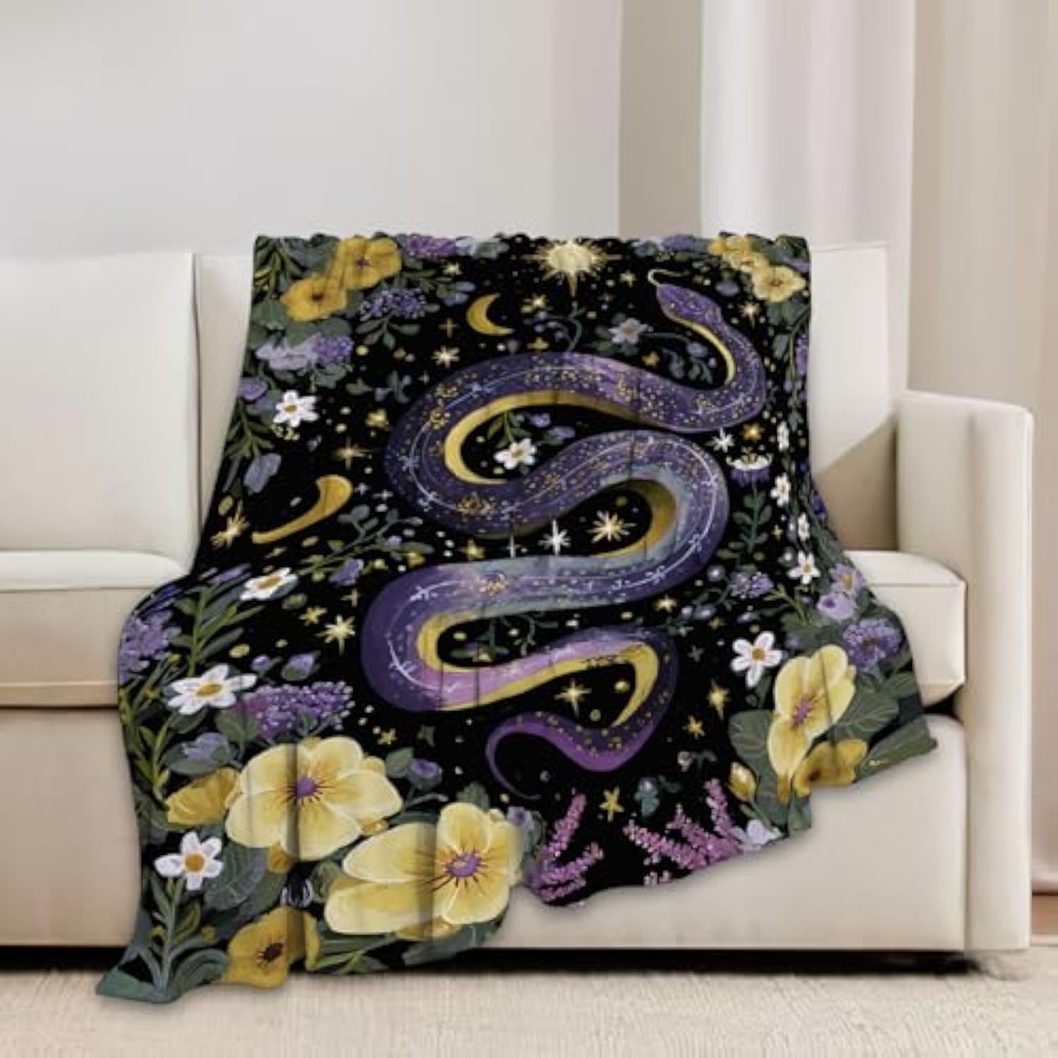 Purple Snake Blanket Fantasy Floral Reptiles Throw Blankets Gifts For Girls Boys Kids Snake Lover Soft Cozy Fleece Plush For Couch Sofa Bed 50"X40"