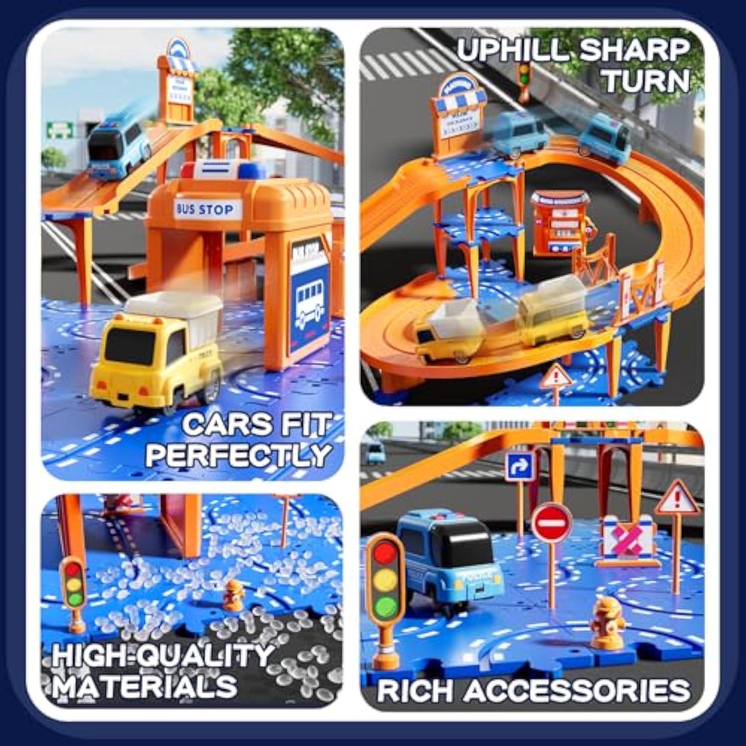 | Creative Diy Puzzle Track Set For Boys 3 4 5 6 : This 57 Piece Track Car Toy Includes Puzzle, Turns, Ramps, Road Signs, Stickers, And 2 Cars. The Educational Track Design Fosters Creativity, Concentration, And Hand-Eye Coordination In Children. Puzzle Car Tracks Toys Toys Gifts For Boys Girls Ages 3-8. | | 3-Layer Track Design: Kids Can Create 4-Layer Tracks That Cars Up, Down. Includes Road Signs For Role Play Fun And Interaction. By Piecing Together Different Routes, Children Can Improve Their Hands-On Ability, Logical Thinking And Problem-Solving Skills. Suitbable Floor Puzzle Car Tracks Toys For Kids Boys Toddlers 3 4 5 6 7 8. | | Easy To Assemble : Each Piece Of The Puzzle Can Be Put Together Seamlessly, The Flawless Union Between The Racing Car And Track S A Smooth Motion. The Car Track Set Comes With Instructions, Kids Can Assemble Together With The Help Of Parents, Enhance Parent-Child Interaction, Cultivate The Child'S Hands-On Ability And Learning For Practice Ability. | | Safe Durable : The Puzzle Track Car Playset Is Made Of High-Quality Abs Plastic, Smooth Edges; Suitable For Children To Play Indoors Or Outdoors. Recommended For Boys Girls, Toddlers, Kids, Children, Preschoolers, 3-5 4-6 Years Old. | | Ideal Car Tracks Gift For Kids Boy : Our Puzzle Car Track Set Combines Educational Puzzles And Track Cars, Making It A Perfect Gift For Boys And Girls Aged 3 4 5 6 7 8. Whether It'S A Birthday, Parties, Children'S Day, Christmas, Thanksgiving, Halloween, New Year And Other Holidays, This Set Will Bring Surprises And Excitement. | |