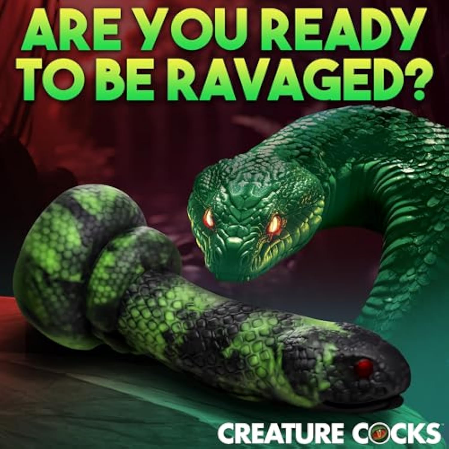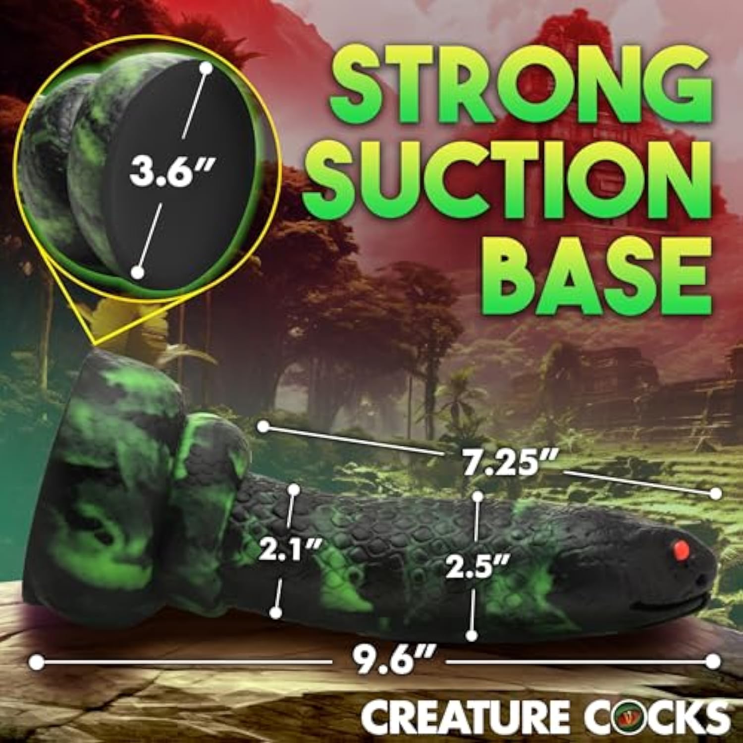 Python Silicone Dildo For Beginners, Men, Women, & Couples. Fantasy Dildo With Suction Cup Base. Harness Compatible, Premium Silicone. 1 Piece, Green & Black.