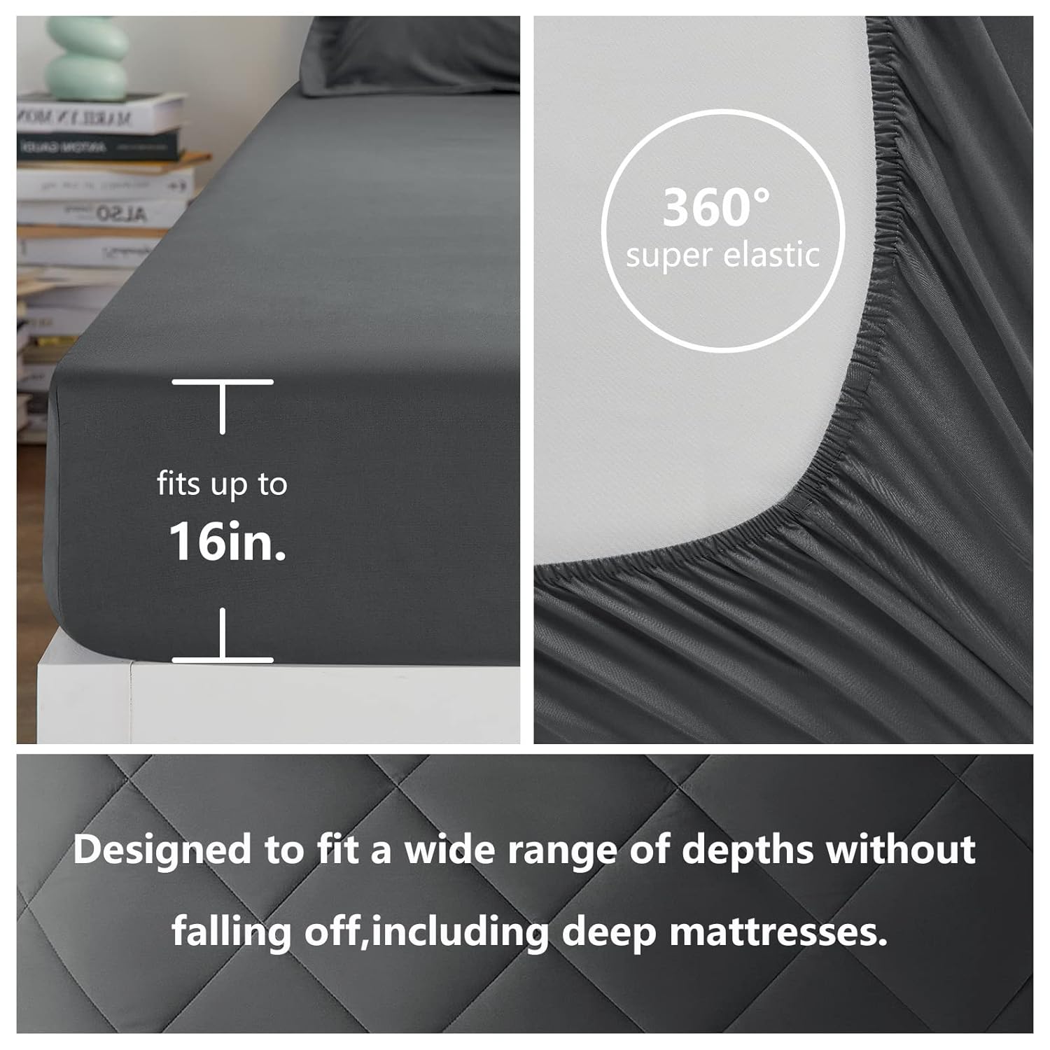 - Elaborate Design: The Elastic Deep Pocket Fitted Sheet Fits Mattress Max Up To 16" Deep. That Can Always Keep Non-Slip No Matter How You Twist And Turn In Your Bed. The Comforter Features Durable Box Stitching Which Offers Sophisticated Look Alongside Simplicity And Will Also Stable