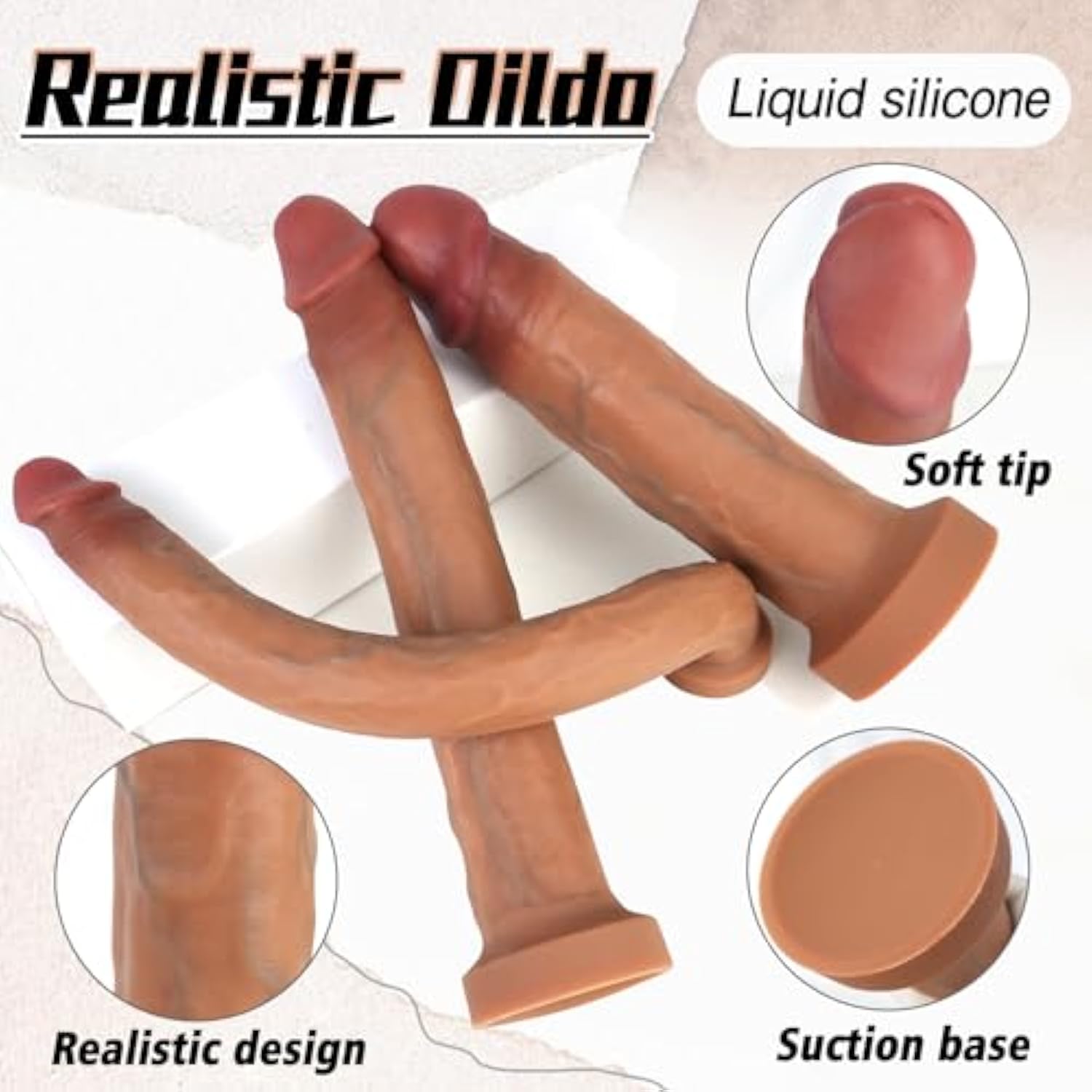 Realistic Anal Dildo, 10.82 Inch Anal Butt Plug Silicone With Suction Cup Base For Hands-Free Play Flexible Soft Lifelike Thick Dildo Anal Plugs For Anus Dilation Adult Sex Toy Brown (L)