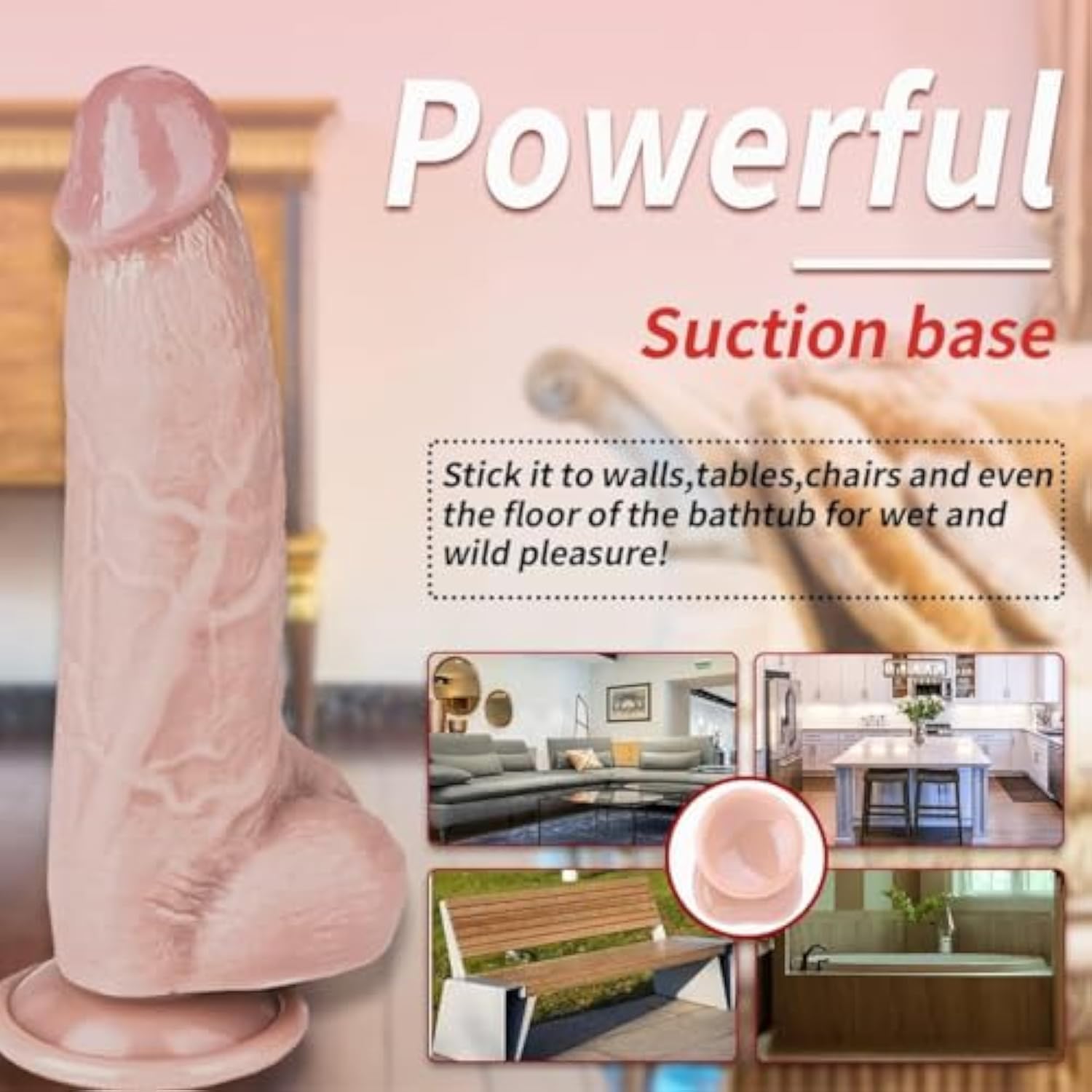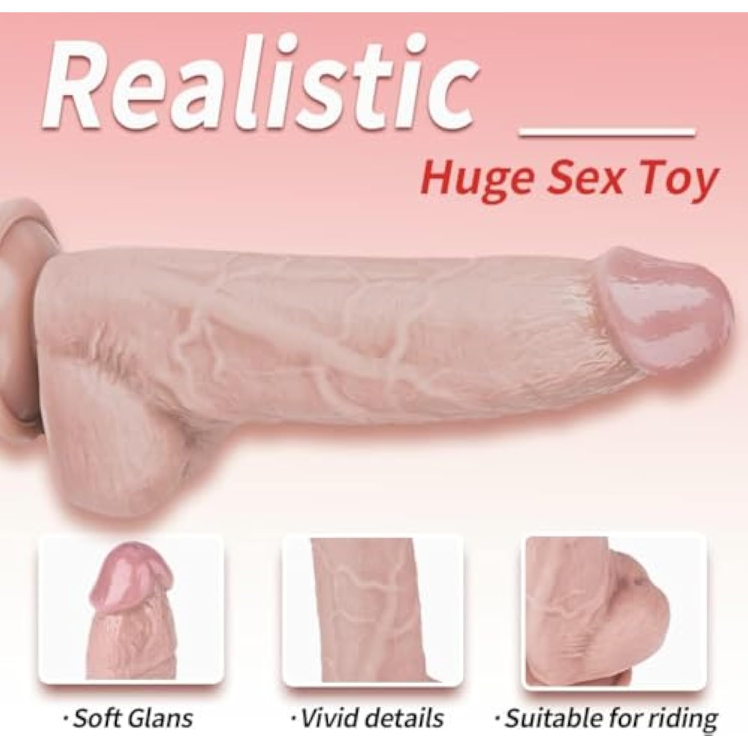 Realistic Dildo, 8.8 Inch Dual-Density Silicone Huge Penis With Strong Suction Cup For Hands-Free Play Flexible Dong For Manual Sex Toy