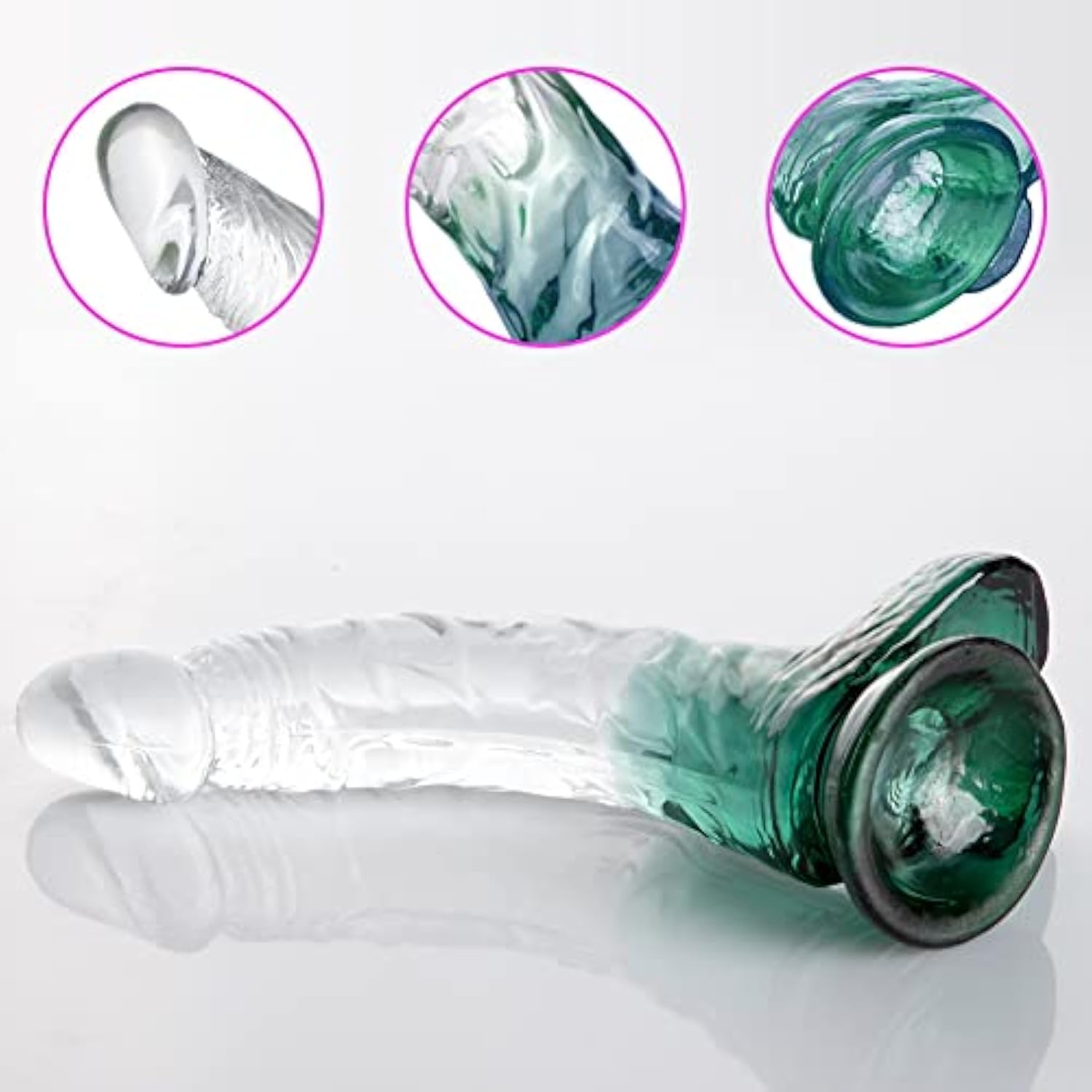 Realistic Dildo Curved Shaft G-Spot Stimulation Penis With Strong Suction Cup Testis And Veins Design For Sensitive Point Sex Stimulation For Woman Man Masturbation Adult Toy (Green)