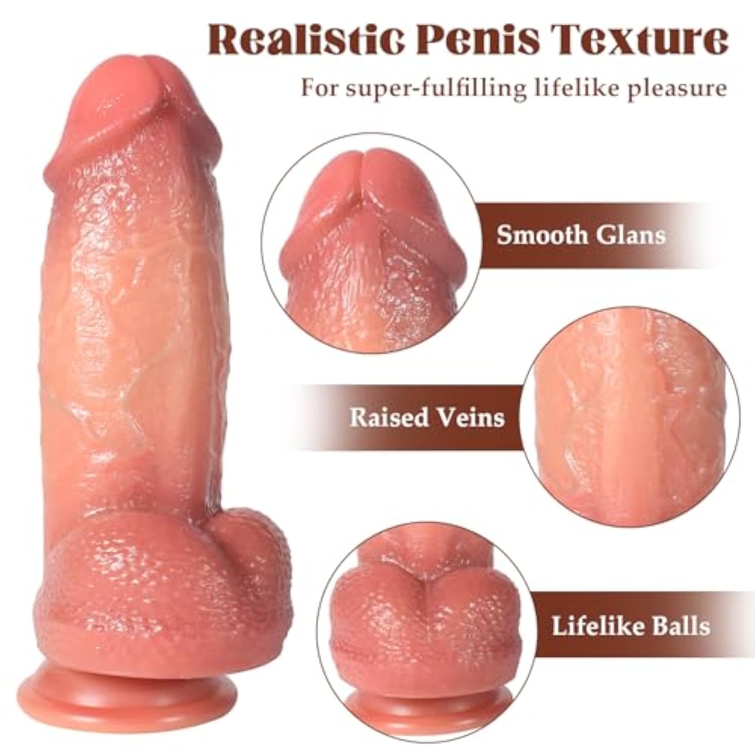 | ???Realistic Dildo?Thicker And Larger For Normal Player---Upgrade Your Pleasure With This 8.46-Inch Huge Realistic Dild! Featuring A 5.8-Inch Insertable Length And A Satisfying 1.65-Inch Diameter, It'S Perfect For Those Seeking A Fuller Experience. Dive Into New Sensations And Explore The Depths Of Pleasure With This Larger-Than-Life Sex Toy. | | ???Unique Desing?This Dildo Offers A Firm Yet Flexible Feel,Featuring A Realistic Head, Shaft With Cyan Veins, And Textured Balls, Every Detail Is Designed For Maximum Pleasure. Feel The Fullness As You Explore The Thick, Veiny Texture Of This Lifelike Dildos. Just Like The Real Penis. Perfect For Prostate Stimulation And A Truly Fulfilling Experience. | | ???Strong Suction Cup?This Sex Dildo Features A Powerful Suction Cup Base That Can Be Securely Attached To Any Smooth Surface, Allowing For Vigorous Play. Stick It To The Floor?Wall Or Chair, And Experience Amazing Dual Stimulation As You Ride. It'S Also Compatible With Strap-On Harnesses, Making The Strap-On Dildo Perfect For Lesbian.Enjoy Hands-Free Pleasure? | | ???Easy To Clean ?Use?Soft But Strong High Quality Silicone Material Adult Toy! The Fully Waterproof Design Allows It To Be Fully Submerged, Playable In The Tub Or Shower, And Very Easy To Clean. You Can Add A Little Water-Based Lubricate Before Use, Which Will Provide You With A More Comfortable Experience. After Each Use, Please Wash It With Warm Water And Soap, Air Dry.Then Store The Penis-Shaped Dildo For Anal Play Away Until The Next Use. | | ???Discreet Package?All Of Adult Sex Products Are Discreet Packed, With No Sensitive Information On The Box To Protect Your Privacy. No One Knows What'S In The Delivery Box, Just Providing You With The Best Private Protection. If You Encounter Any Problems In The Process Of Using The Product, Please Feel Free To