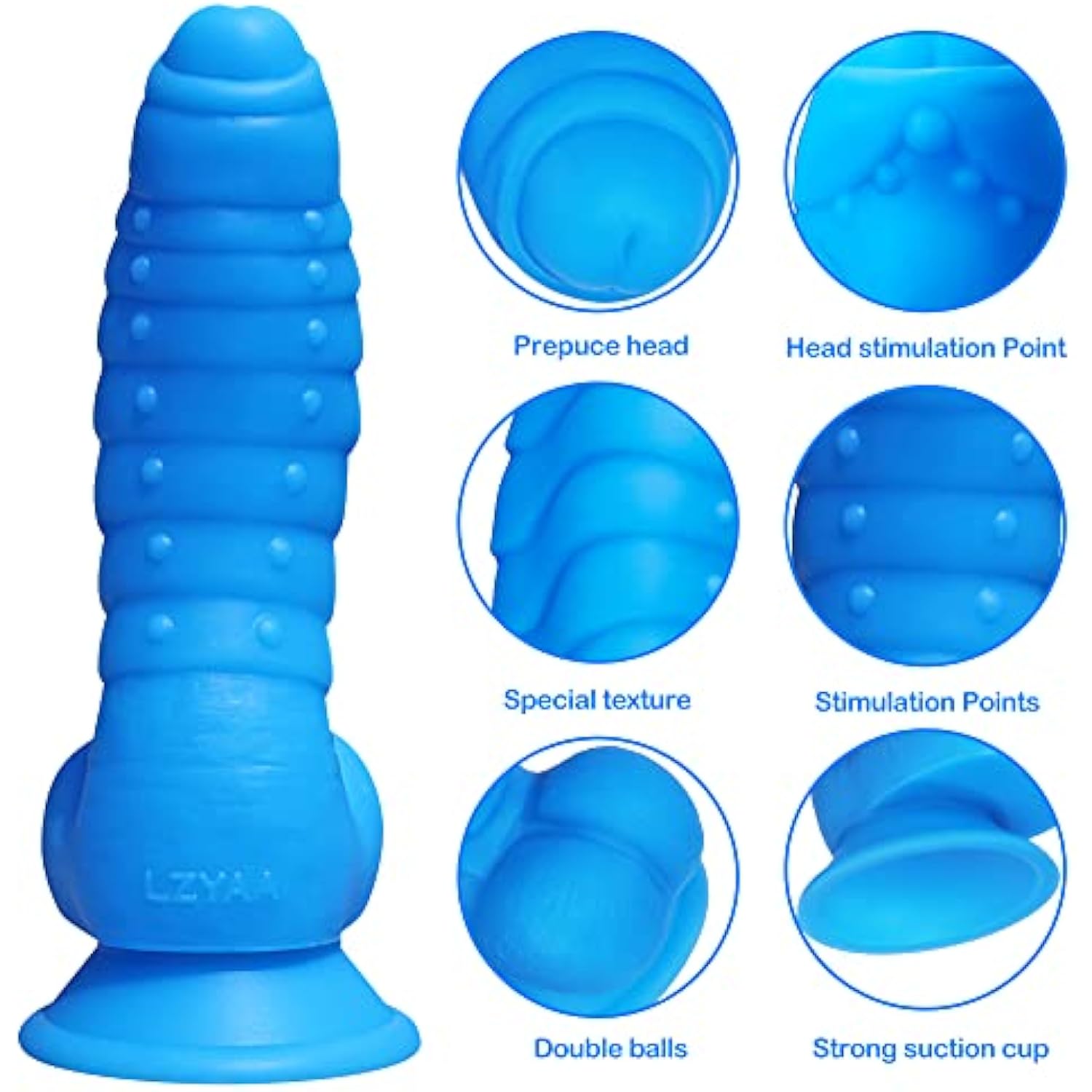 Realistic Dildo, Liquid Silicone Material No Any Smell Adult Sex Toys Penis, Strong Suction Cup For Hand-Free 2 Balls G-Spot Vaginal Discreet Package(Blue)