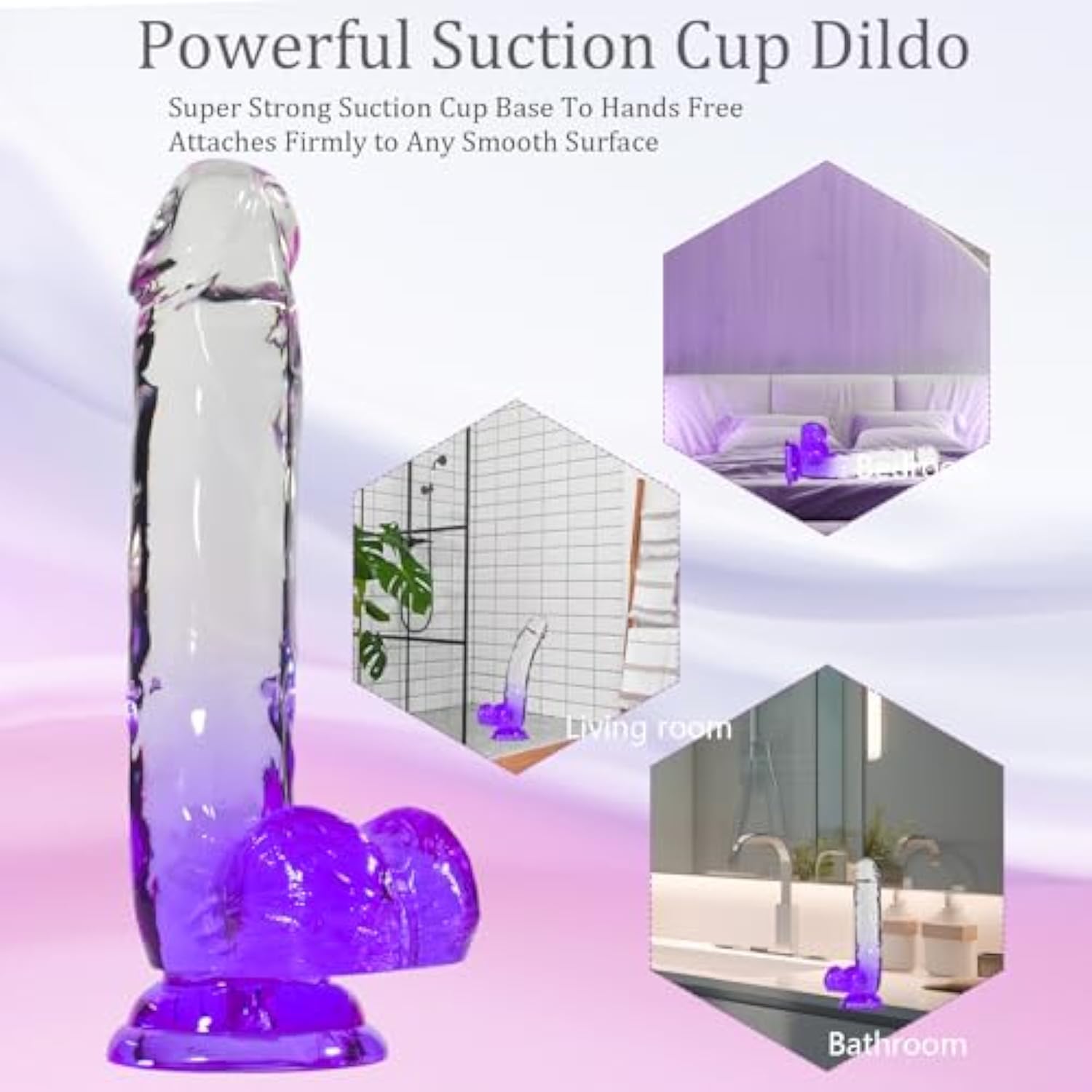 Realistic Dildo Sex Toys For Woman, 8.7" Soft G-Spot Dildo With Strong Suction Cup, Lifelike Clear-Purple Gradient Penis Adult Sex Toy For Vaginal And Anal Stimulation