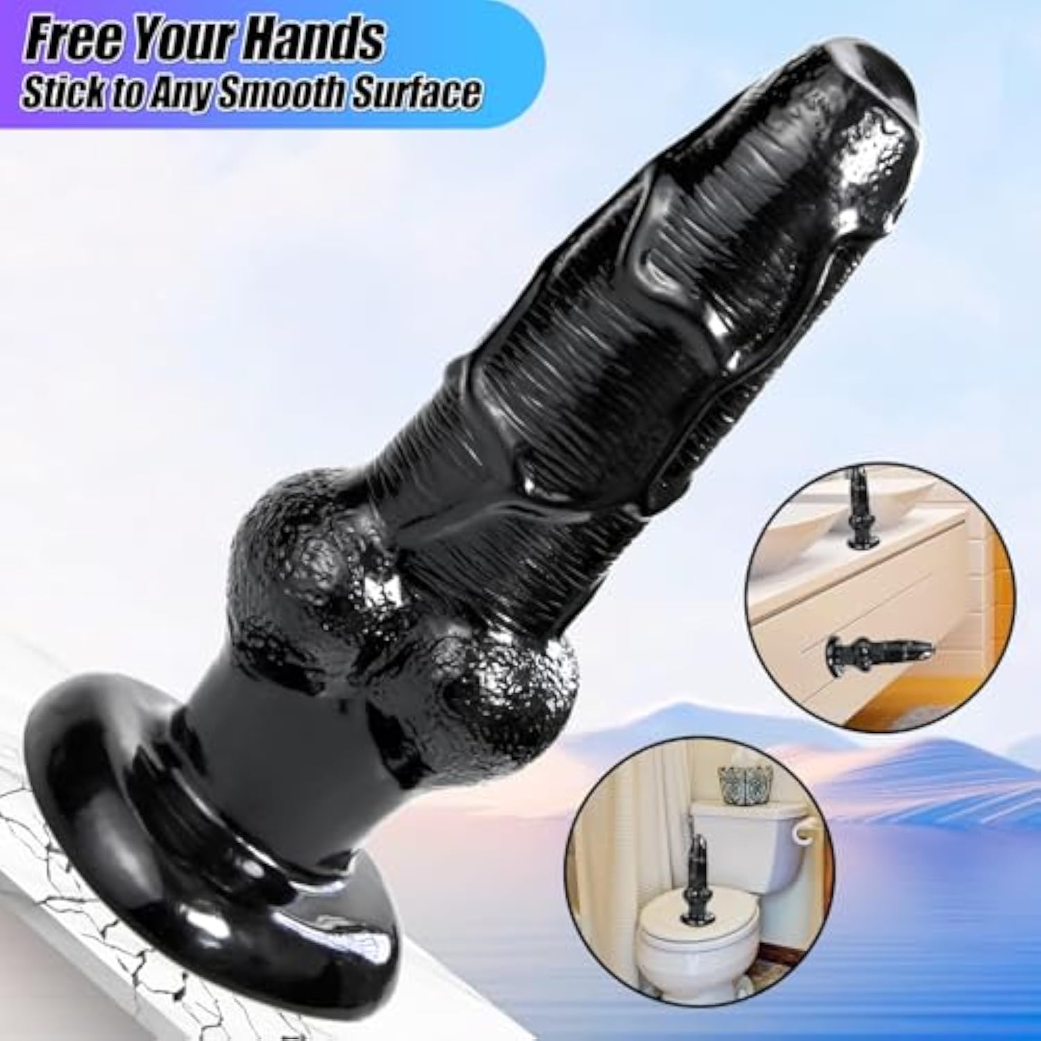 Realistic Fantasy Animal Anal Dildo With Strong Suction Cup Dog Dildo For Vaginal Anal Training G-Spot Stimulation Prostate Massage Adult Sex Toy For Beginner Men Women (Black)