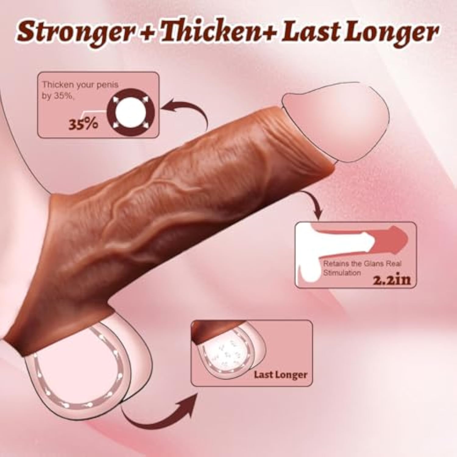 - Realistic And Comfortable Design 'S Penis Sleeve Extender Is Crafted With Ultra-Realistic Details, Including Lifelike Vessel Veins, Designed To Increase Both The Length And Girth Of Your Penis. The Half-Wrapped Design Retains Real Friction Stimulation F