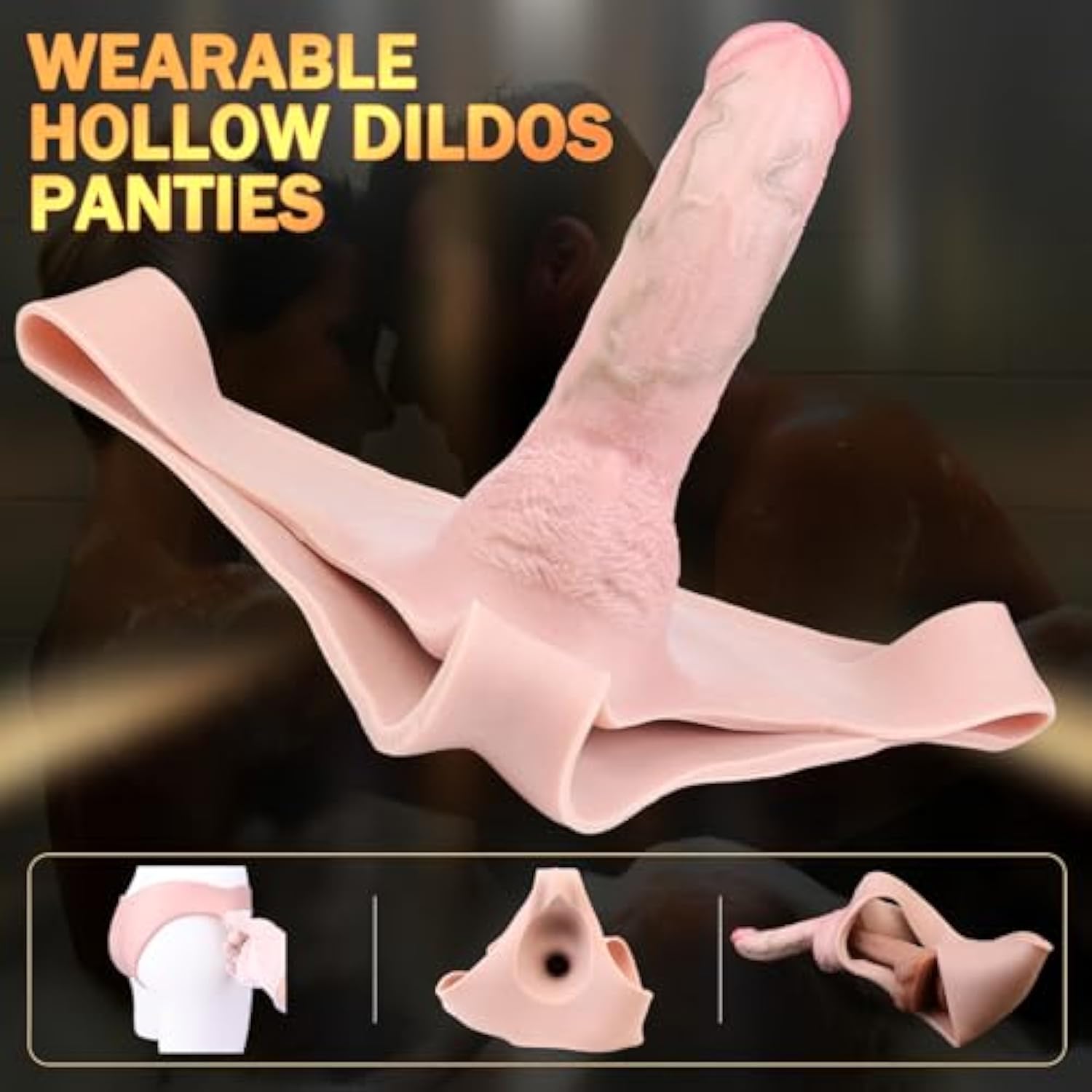 Realistic Strap On Harness, Wearable Dildo Panties For Men, Silicone Cock Sleeve Penis Enlarger Extender With Hollow Dildo Adult Sex Toy For Mens Couples Pegging