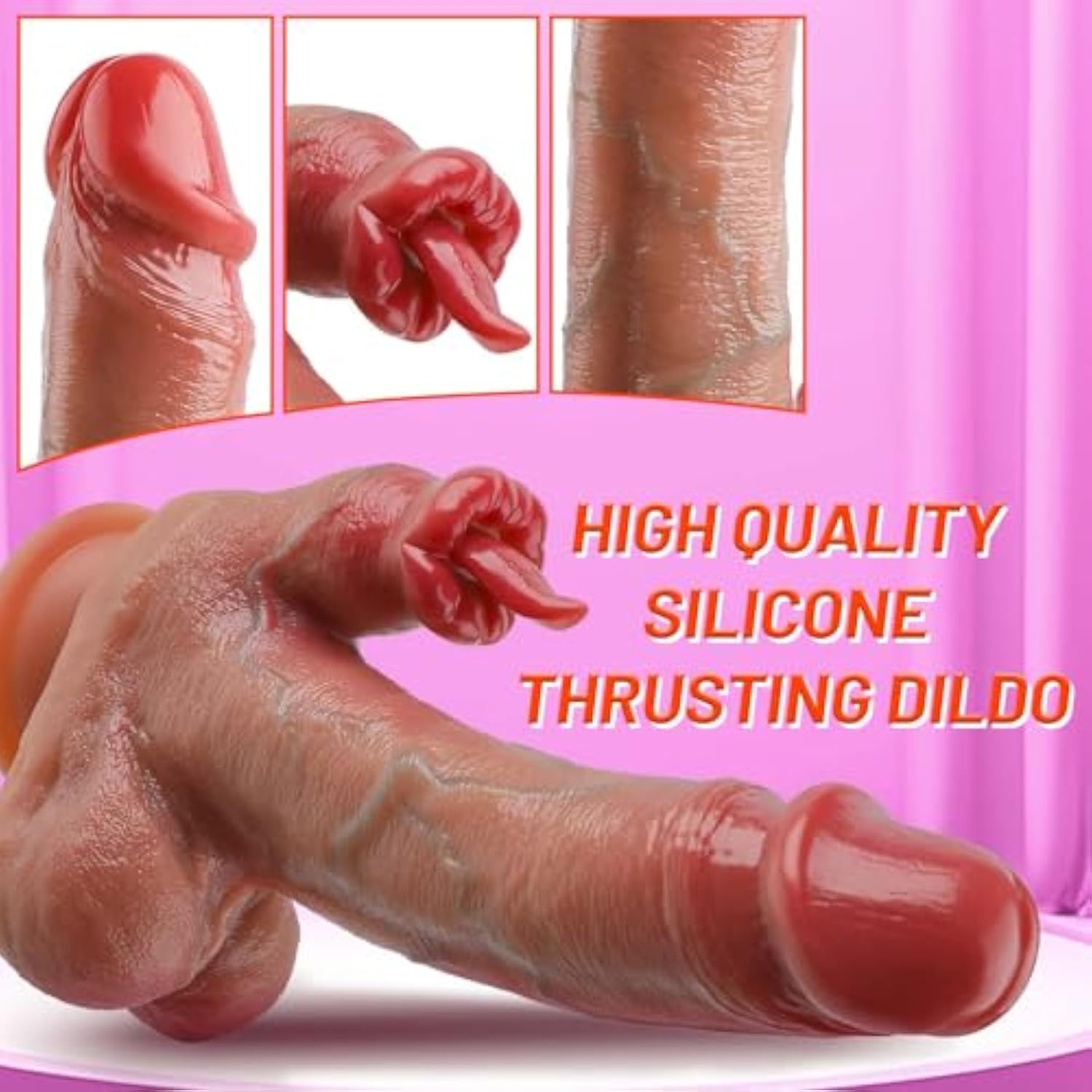 - ??? 4 In 1 Thrusting Dildo ? This Thrusting Dildo Combines Thrusting, Vibrating, Licking And Heating 4 Type Stimulation. It Can Be Stimulate Your Clitoris Or Anal While Masturbating In The Vagina Or Backyard, Give You A More Intense, Richer Experience.