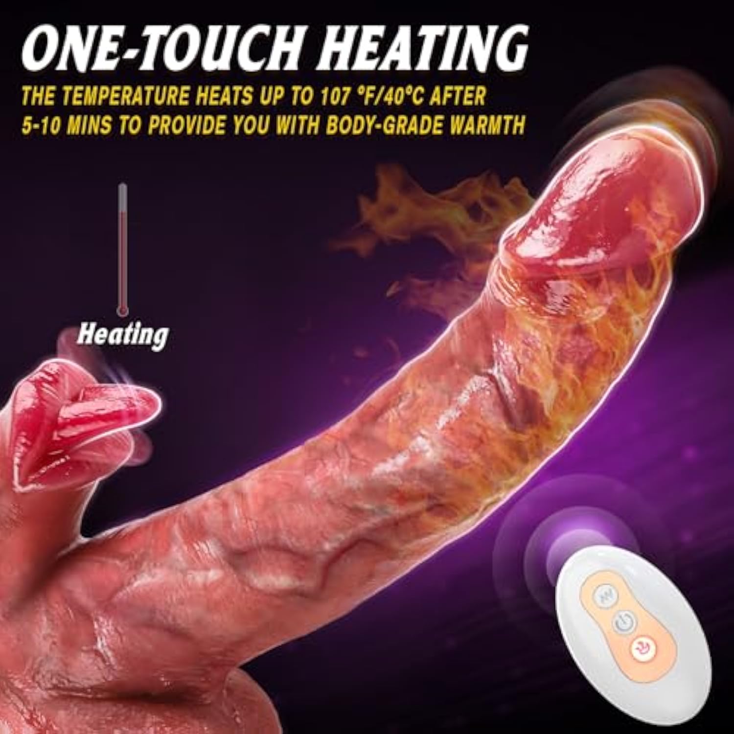 Realistic Thrusting Dildo Licking Vibrator, Sex Toys Silicone Dildos Vibrators With 9 Vibrating 9 Thrusting & Heating Licking Modes For Anal G-Spot Stimulation, Remote Control Adult Toys For Women Men