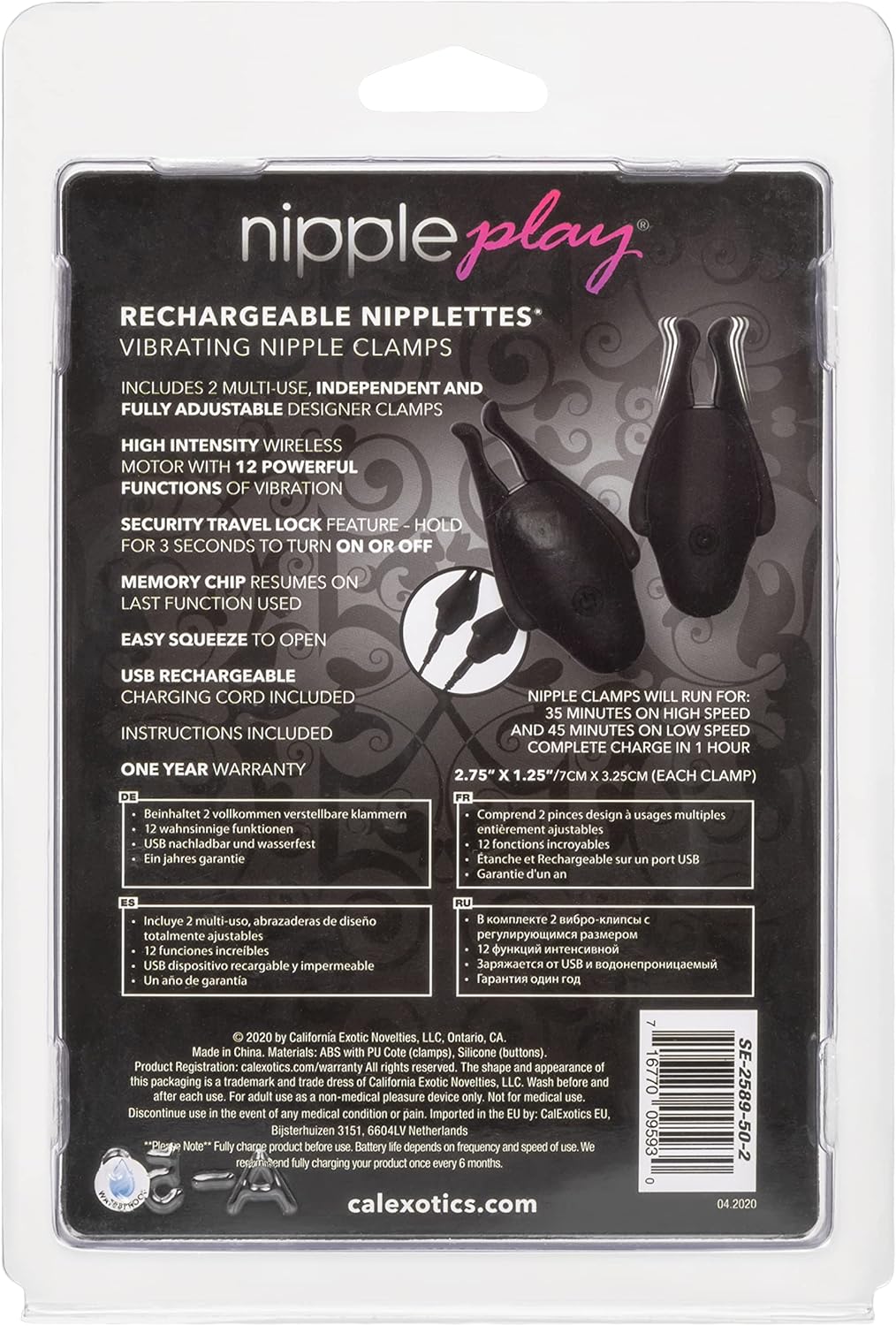 Rechargeable Adjustable Nipple Clamps, Easy Squeeze Design for Comfort - Black