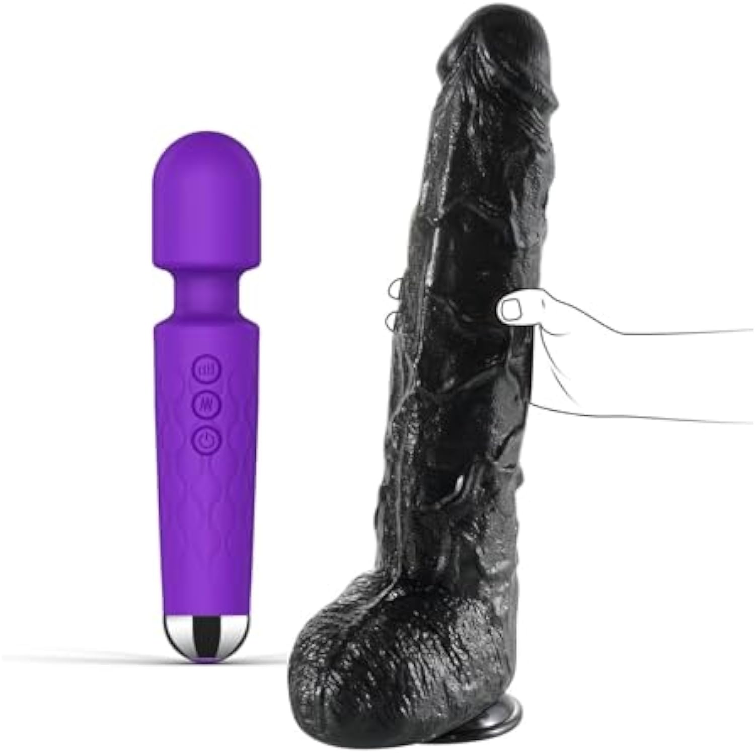 Rechargeable Personal Wand Massager + 17.3 Inch Long Realistic Huge Thick Dildo