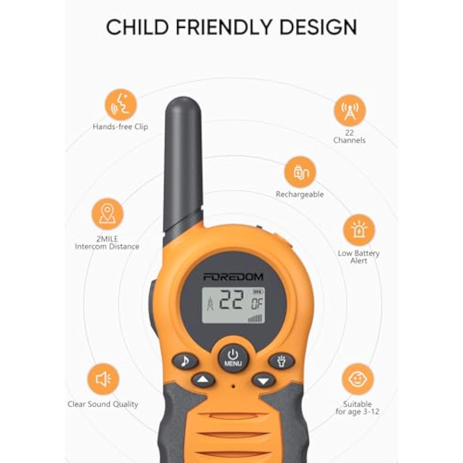 | Rechargeable And Eco-Friendly: Say Goodbye To Purchasing And Changing Batteries Frequently! Our Rechargeable Kids Walkie-Talkies Are Equipped With A Non-Removable Rechargeable Lithium Battery And A 2-In-1 Usb Charging Cable (Adapter Not Included) That Can Charge Two Walkie Talkies At Once. The Battery Boasts An Impressive 48-Hour Talking Time And 7-Day Standby Time. | | Multi-Channel And Long Range: With 22 Channels And A Range Of Up To 2 Miles, Children Can Communicate Privately Without The Risk Of Being