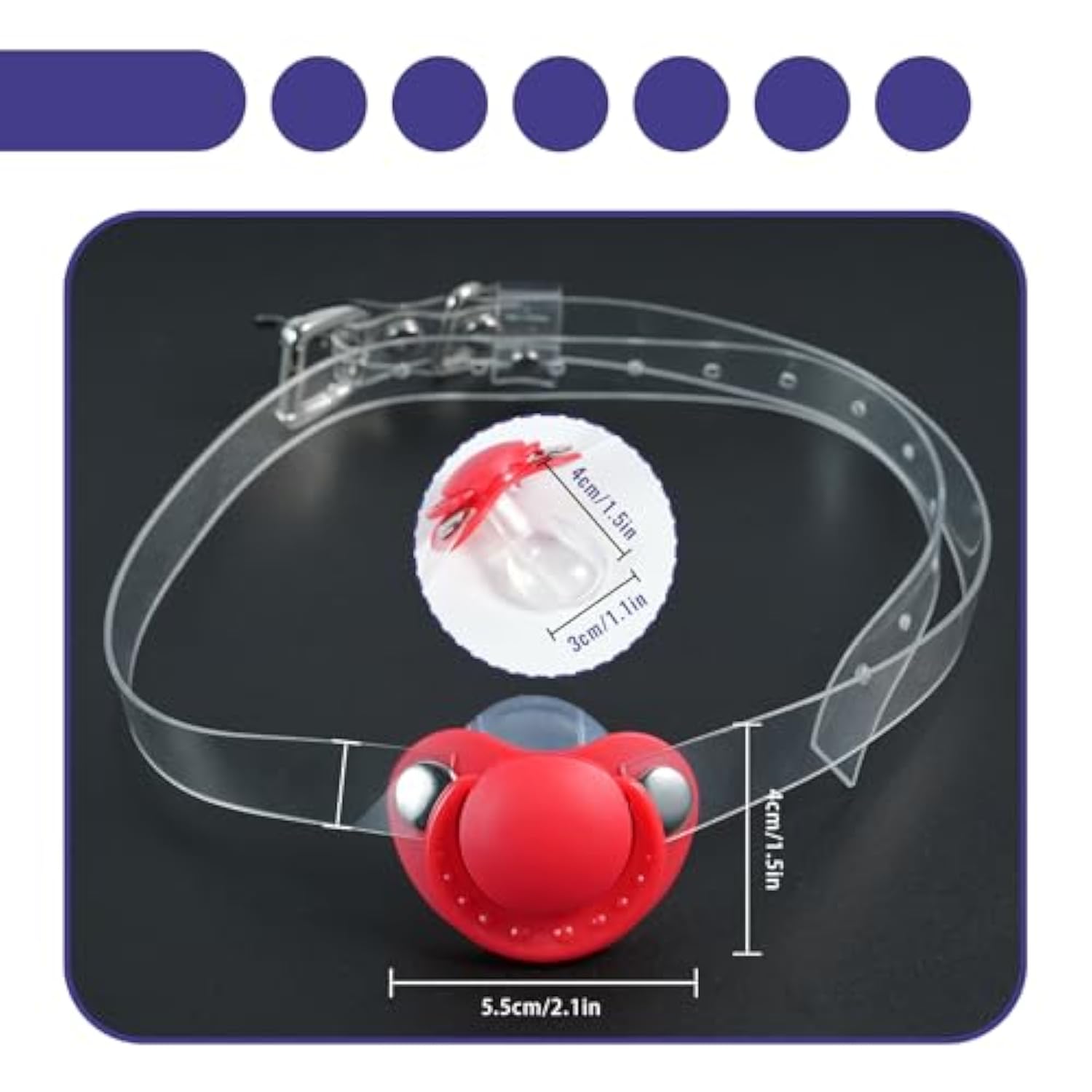 | ?Smooth Bite?3Cm Diameter Pacifier Is Smooth But Firm?It Is Small Enough And Great To Bite Down On.Will Not Cause Serious Discomfort | | ?Fully Adjustable?Our Open Mouth Gag Is Fully Adjustable To Suit Your Preferences. Easy To Clean After Use. Sm Open Mouth Gag. The Straps Are Long, Have Enough Space, And Have Enough Holes To Fit Any Size You May Need. | | ?Material?Silicone, Pvc. High Quality Silicone, Safe To Human Body, Soft And Smooth Material Will Never Damage Teeth Or Hurt The Skins Around. Easy Clean Up With Mild Soap Or Toy Cleanser. | | ?Easy To Use?Just Put The Pacifier In The Wearer'S Mouth And Adjust It With The Buckle Around The Back Of His Head To Meet Your Needs. | | ?Discreet Package? Our Adult Sex Toys Will Be Neatly Packaged In A Discreet Package. Please Feel Free To