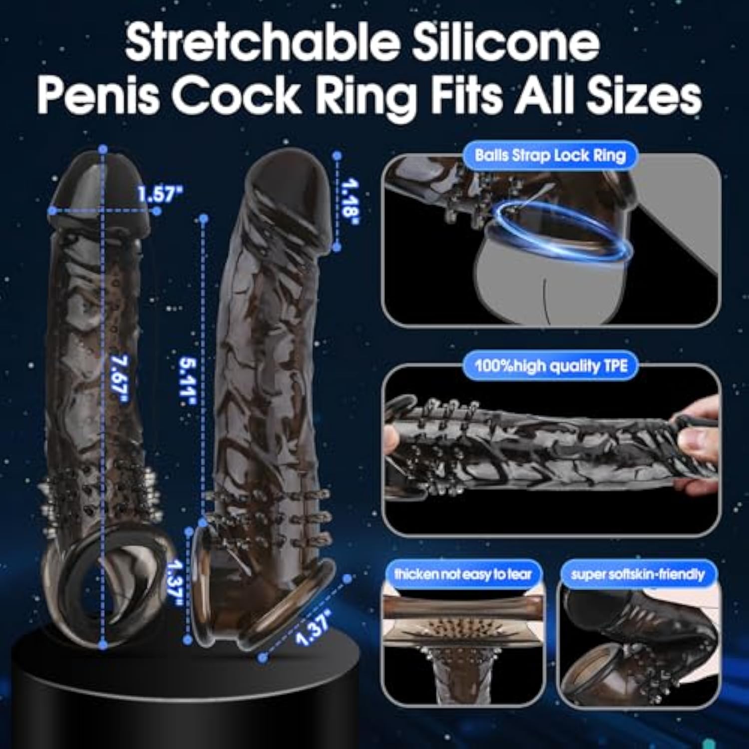 Reusable Penis Sleeve Cock Ring For Men, Soft Inner Textured Penis Extender Ring With Testicle And G-Spot Stimulation, Waterproof Male Sex Toy For Sex Toys For Men(Black)