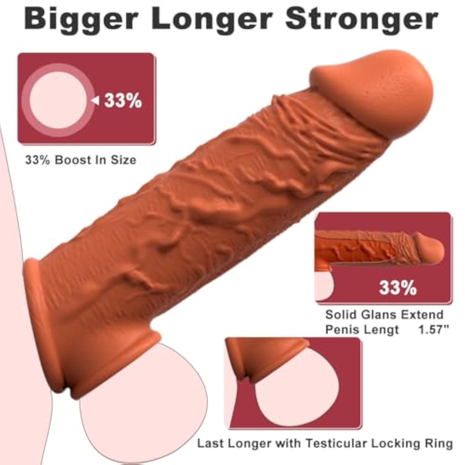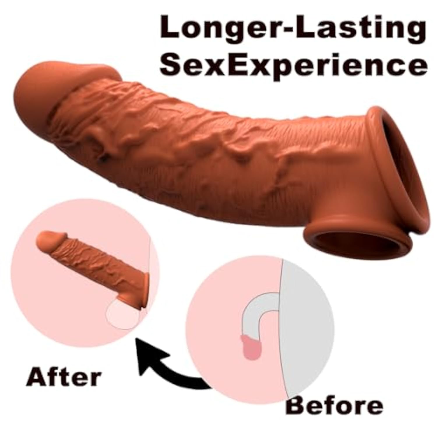 | ?Increase Size And Realistic Texture?:The Cock Sleeves Is 7.7Inch Long, 1.5 Inches In Diameter, And With A Total Circumference Of About 4.93 Inches, It Helps Extend By 1.57 Inches, Increases Penis Volume By 33%, And Gives You A Larger Penis Head. Deeper Penetration And Enhanced Stimulation For Your Loved One.Cock Sheath Make Every Intimate Moment More Passionate. | | ?With Elastic Testicular Rings?: Our Penis Sleeves Feature Elastic Thickened Testicular Rings At The End, A Unique Design That Locks The Ball In Place While Providing A Secure And Comfortable Fit. It Promotes Swelling By Gently Restricting Blood Flow, Leading To An Increase In Length And Stiffness. Enhances The Fun And Prolongs The Experience. | | ?High Quality Liquid Silicone?: Our Reusable Dildo Sleeve Are Made Of Liquid Silicone, Which S A Skin-Friendly And Realistic Experience, And Is Odorless, Non-Toxic And Easy To Clean. The Girth Enhancer Vividly Simulates The Vivid Glands And Veins Of The Skin Tone. | | ?Male Enhancement Couple Pleasure?: Our Pennis Sleeve Enlarger Not Only Helps To Enhance Male Size And Stamina, But Also Serves As A Tool To Stimulate A Woman'S Vagina And Enhance Female Pleasure. Penis Enlargements Bring You And Your Partner Closer Together And Add Pleasure To Your Swing Sex. | | ?Discreet And Private Packaging?: Protecting Your Privacy Is Our Top Priority. All Of Our Products Are Shipped In Private, Unmarked Packaging To Ensure Discreetness. Please Do Not Hesitate To