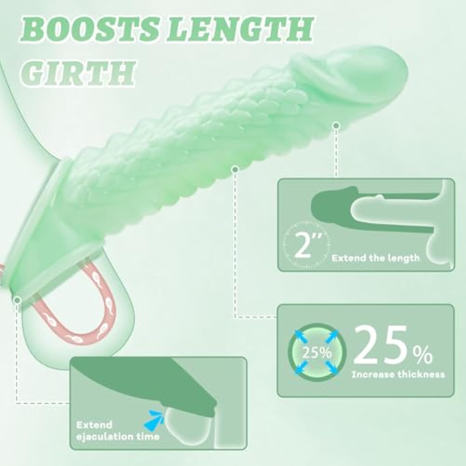 Reusable Vibrating Penis Sleeve Cock Ring Extender,2 Inch Ultra-Soft Penis Extender For Couples Sex Toys For Men (Green)
