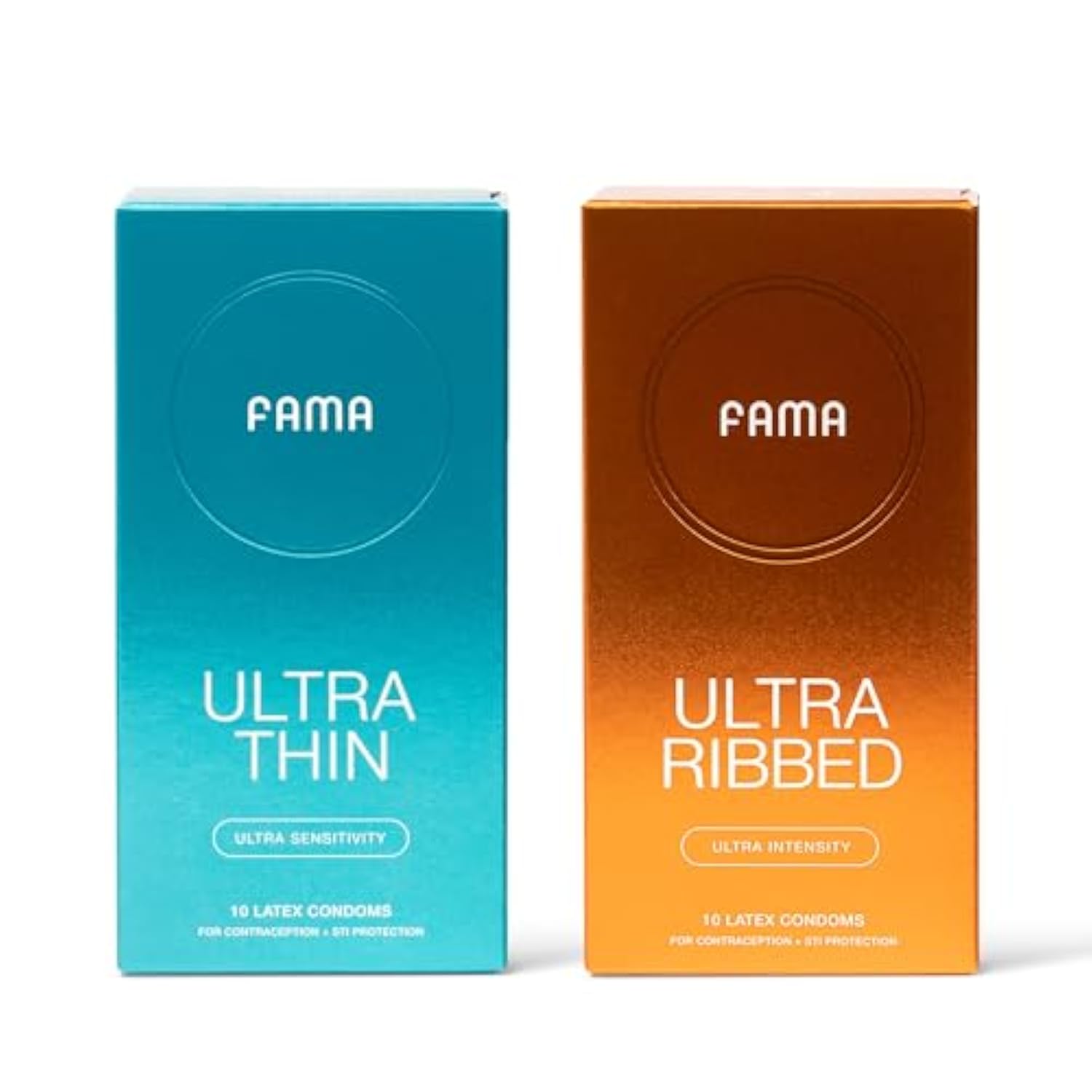 Ribbed&Ultra Thin Condoms, For Ultra Sensitivity, Natural Latex, Lubricated Condoms - 20 Count