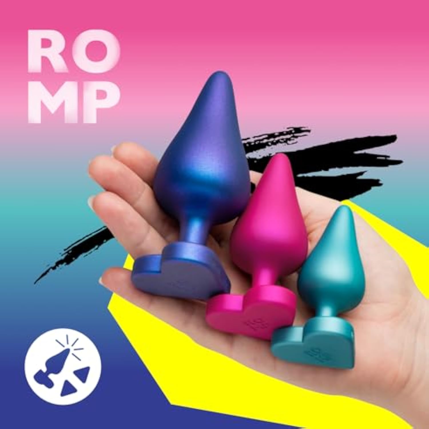 | BUNDLE INCLUDES: ROMP LUSTER SET OF 3 ANAL PLUGS WE-VIBE PIVOT VIBRATING PENIS RING | | THREE TIMES THE FUN: ROMP Luster is a trio of butt plugs designed to as an intro to anal play. Start small and work your way up through the three sizes. | | WEARABLE PENIS RING: Comfortable design, suitable for any position stimulates the clitoris. | | THE PERFECT FIT: Tapered tips, slim necks and flared bases keep ROMP Luster anal plugs comfortable to wear, no matter how long you play. Their ergonomic shape also makes them delightfully easy to insert and remove | | PIVOT FEATURES: 10 powerful vibrations with remote control app. | |