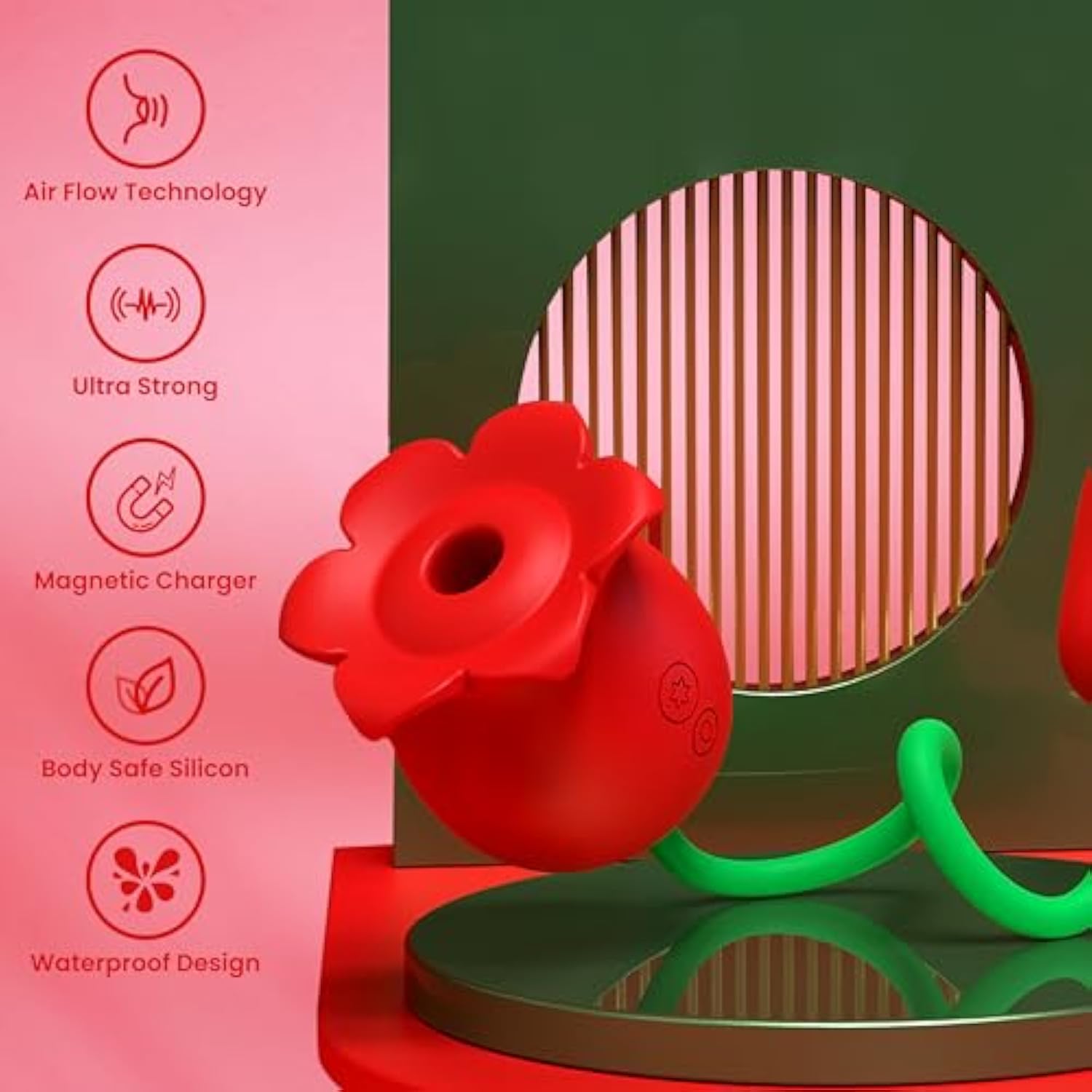 | 2-In-1 Clitoral G-Spot Stimulation: This Rose-Inspired Adult Toy Is Uniquely Engineered With Dual Stimulation Capabilities—Suction At The Clitoral Tip And Rhythmic Thrusting At The Base—To Deliver Mind-Blowing Pleasure. Perfect For Women Seeking Intense Orgasms And Next-Level Stimulation With One Powerful Device. | | 10 Suction 10 Thrusting Modes: With 20 Total Settings, This Rose Sex Toy Offers Complete Control Over Your Experience. Explore Gentle Teasing Or Deep Pulsations Using The Customizable Suction And Thrusting Combinations—Ideal For Beginners And Experienced Users Craving Variety In Their Sex Toys. | | Whisper-Quiet High-Powered Motor: Despite Its Strong 12,000 Rpm Motor, This Clitoral Vibrator Operates At Under 40 Db, Offering Powerful Stimulation While Maintaining Discretion. Use Confidently In Shared Spaces Or On Quiet Nights Without Drawing Unwanted Attention. | | Waterproof Hypoallergenic Silicone: Made With Soft, Body-Safe Medical-Grade Silicone, This Rose Vibrator Is 100% Waterproof (Ipx7-Rated). It’S Ideal For Wet Play In The Bath Or Shower And Gentle Enough For Sensitive Skin, Ensuring A Luxurious And Safe Pleasure Experience. | | Usb Rechargeable Travel-Ready: Enjoy Up To 90 Minutes Of Continuous Use With Just 60–90 Minutes Of Fast Magnetic Usb Charging. Its Sleek 11.1" X 2.4" X 2.7" Design Is Easy To Grip And Fits Discreetly In Your Travel Bag—Perfect For Spontaneous Pleasure On The Go. | |