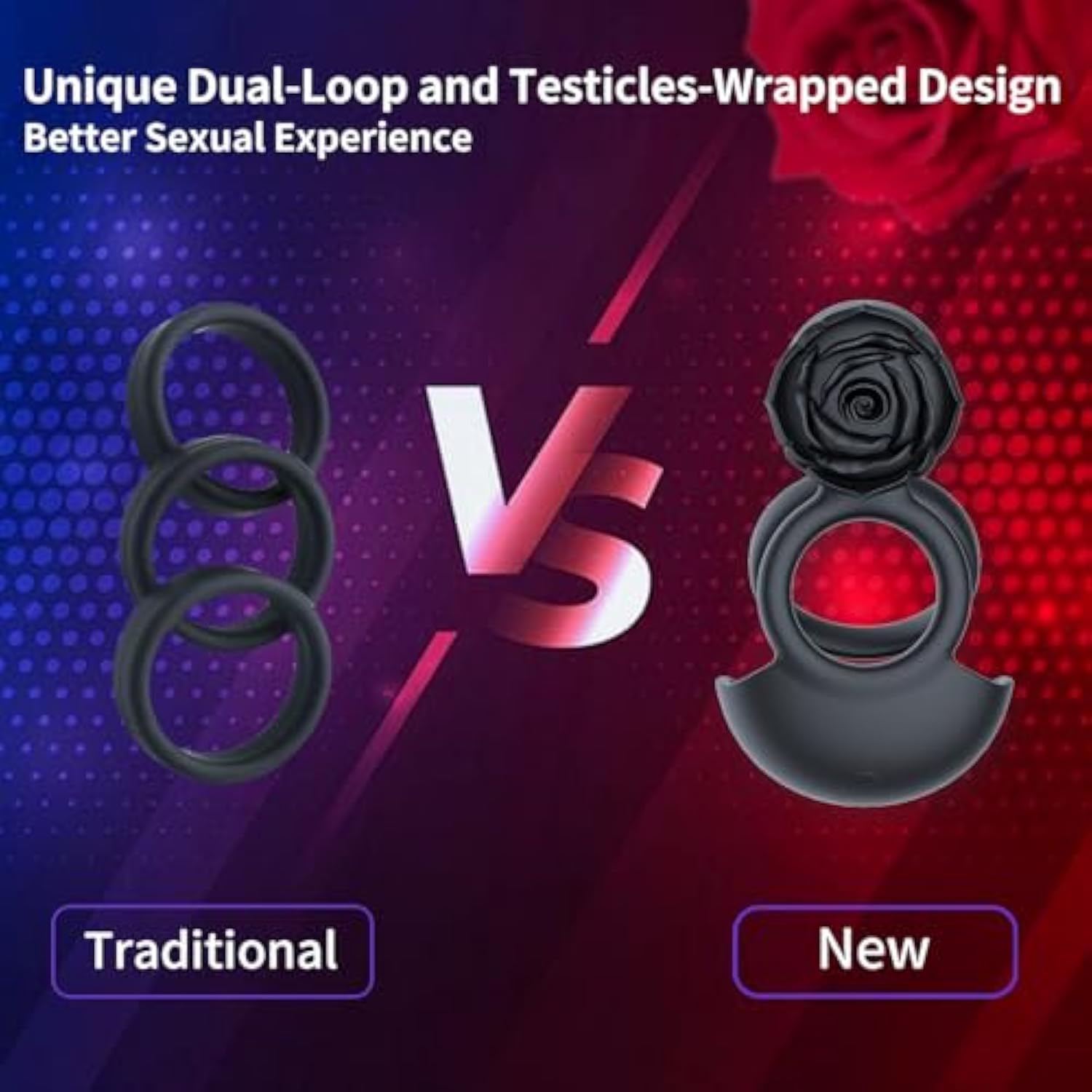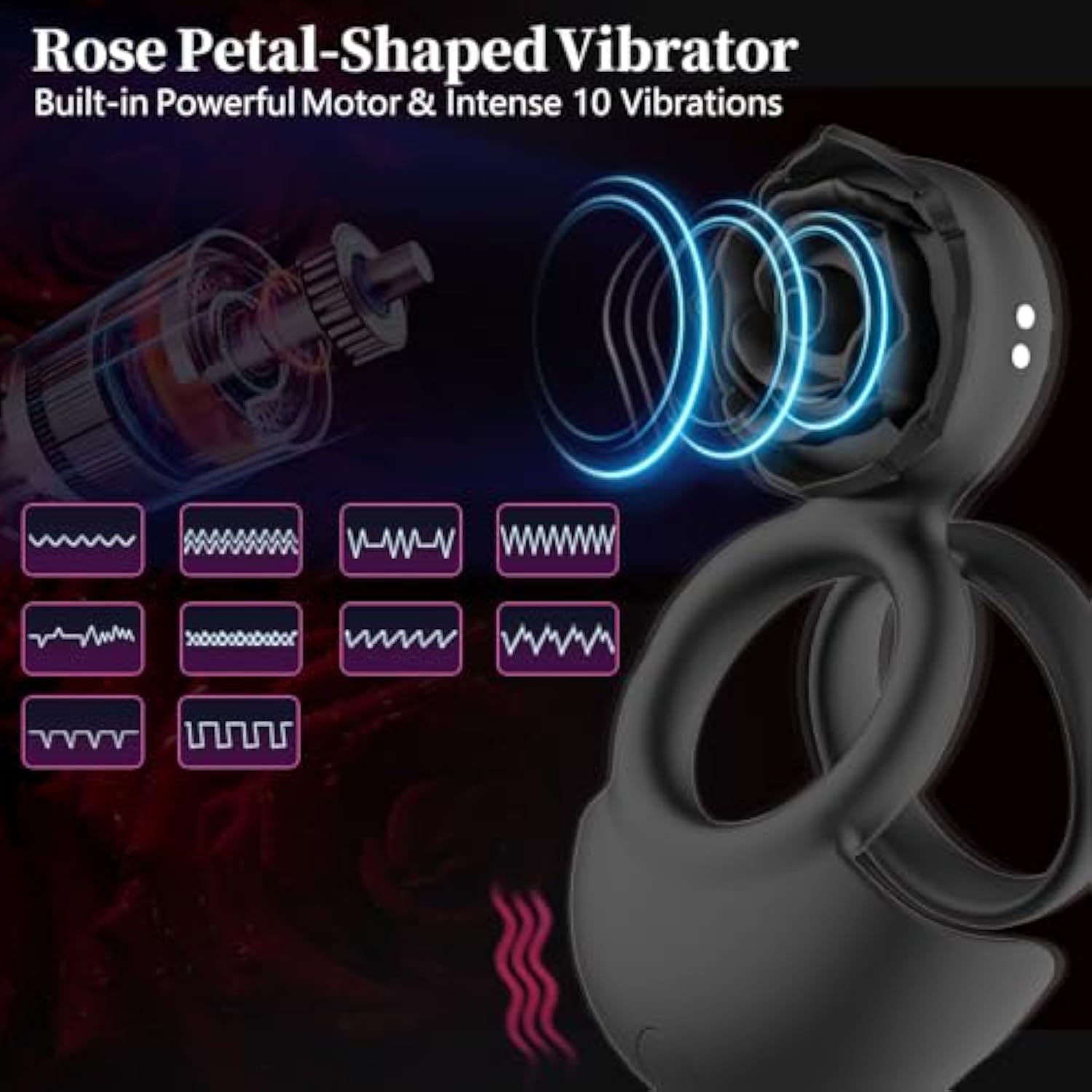 - ?3 In1 Stimulation?The Innovative Rose Petal-Shaped Cock Ring For Layered Stimulation For Penis, Testicles And C Spot. The Cock Ring Wrapping Around Your Penis And Testicles Snugly, The Rose Vibrator Closely Stimulates The C-Spot, For Multiple Sensitive