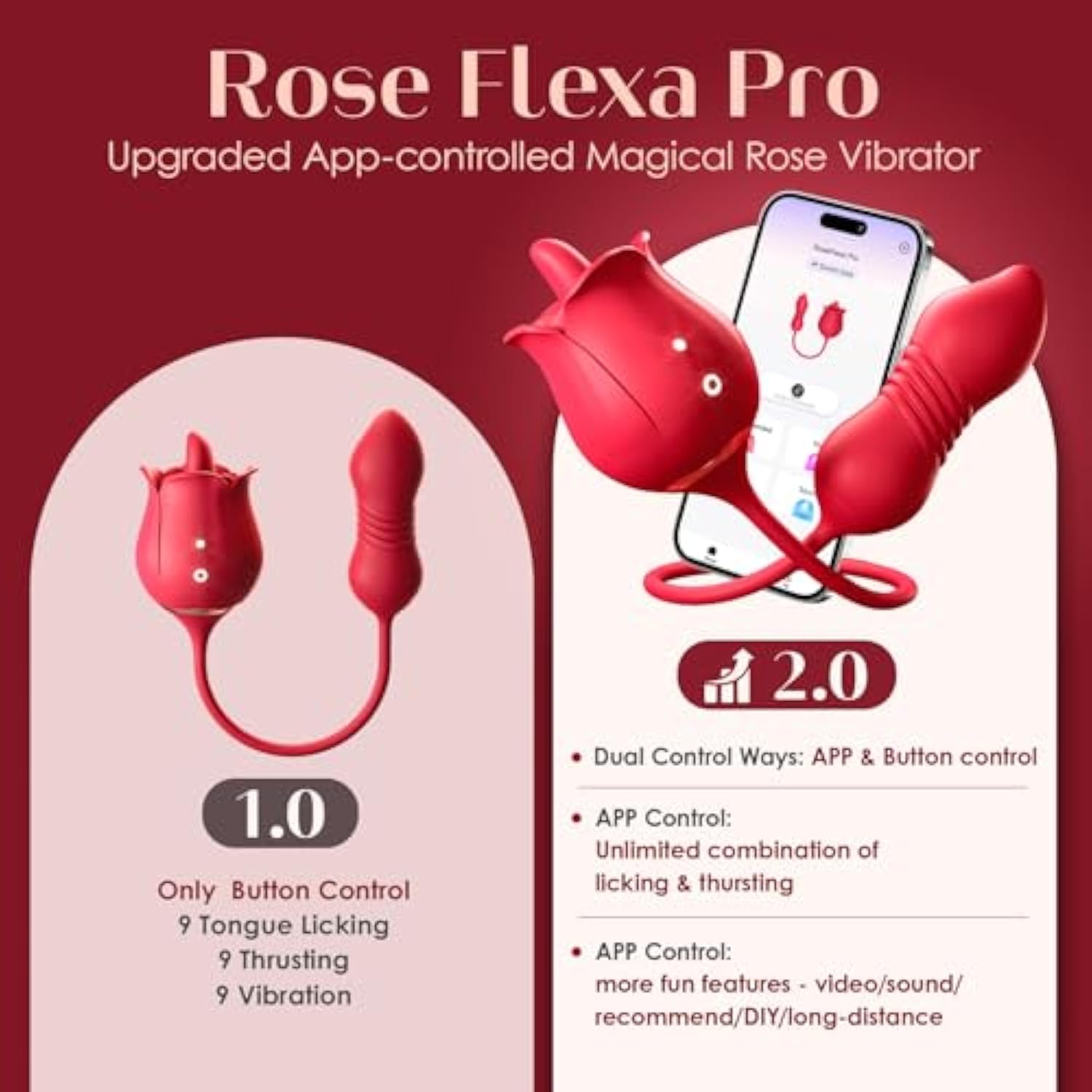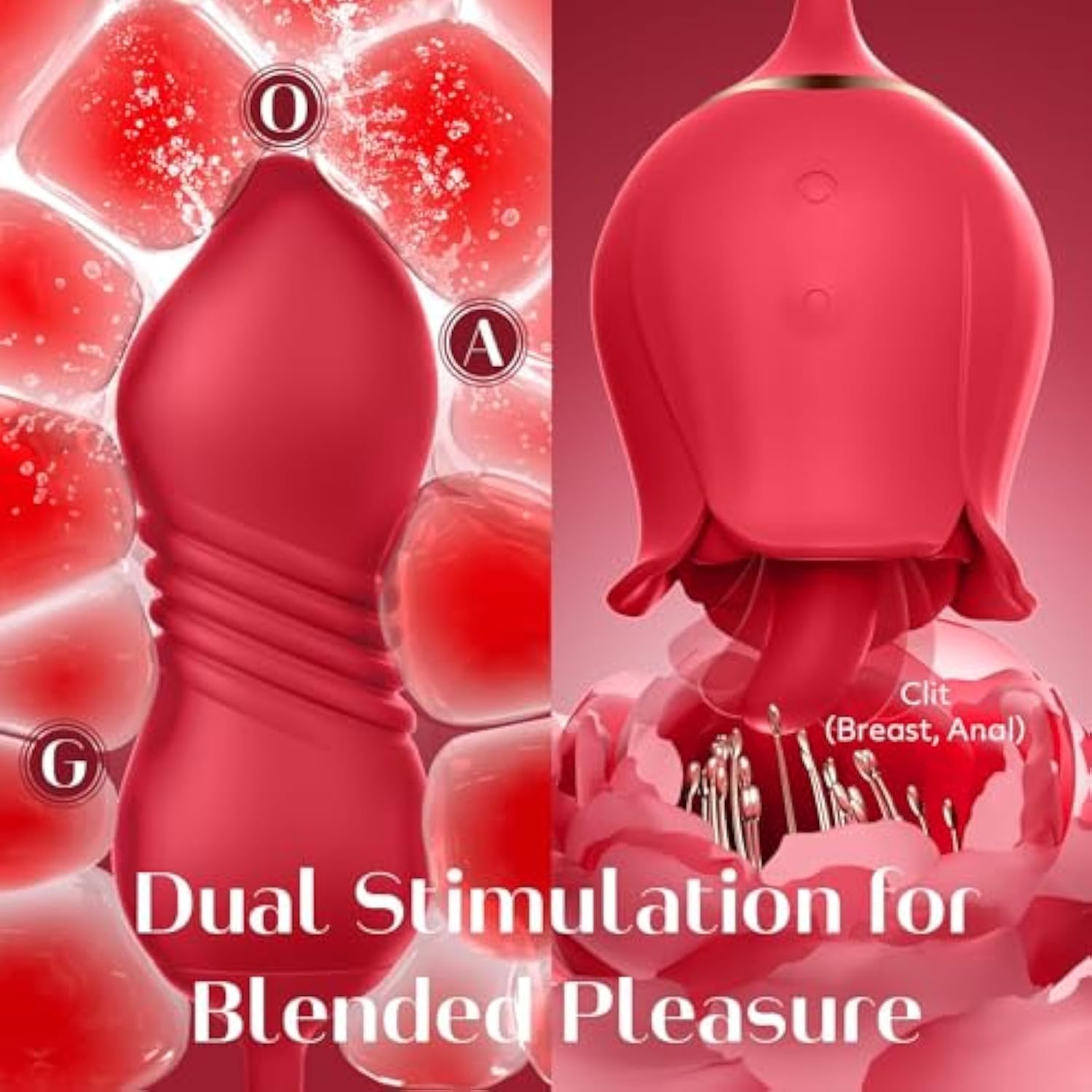 | Dual Stimulation – Inside Out: Rose Sex Toy Combines Licking, Thrusting, Vibrating Modes For Women Couples. 81 Mode Combos Stimulate Clit, G-Spot, Nipples, Neck, Or Anal. Perfect For Solo Fun, Foreplay, Or Couples’ Play Anytime | | Real Licking Sensation, Climax Faster: Soft Silicone Tongue Mimics Real Oral Play To Awaken 10,000+ Clitoral Nerve Endings. 9 Licking Modes Deliver Stronger Stimulation Than Sucking Vibrators, Boosting Sensitivity For Intense Pleasure | | Deep Thrusting Hands-Free Fun: Slim Tapered Dildo With 9 Thrusting Modes For G-Spot Anal Massage. Long Cable Design Allows Hands-Free Use In Bed, Bath, Or Car. From Gentle Pulses To Intense Penetration—Your Choice | | Quiet Operation, Anywhere You Want: Enjoy Pleasure Without Worry—Powerful Motor Stays Whisper-Quiet At ?45Db, Perfect For Discreet Play At Home Or In Shared Spaces. Experience Full-Body Stimulation Without Anyone Noticing | | Waterproof, Skin-Friendly Discreetly Packaged: Made From Silky, Skin-Friendly Silicone For Comfortable Play. Fully Waterproof For Bath Shower Fun. Ships In Discreet Packaging—No Embarrassment. Perfect Gift For Her | |