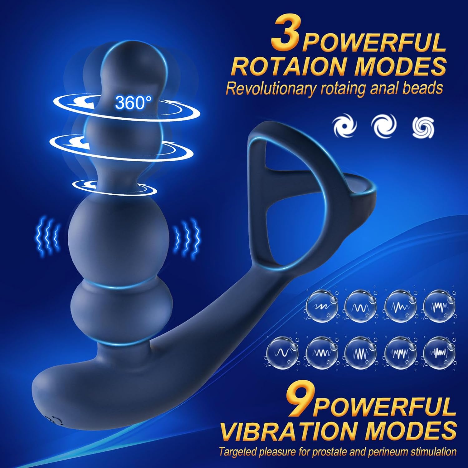 Equipped with 3 rotating modes, the massager delivers deep, targeted sensations. The 360-degree rotating feature ensures precise stimulation, while the anal beads glide smoothly to enhance sensitivity and pleasure.