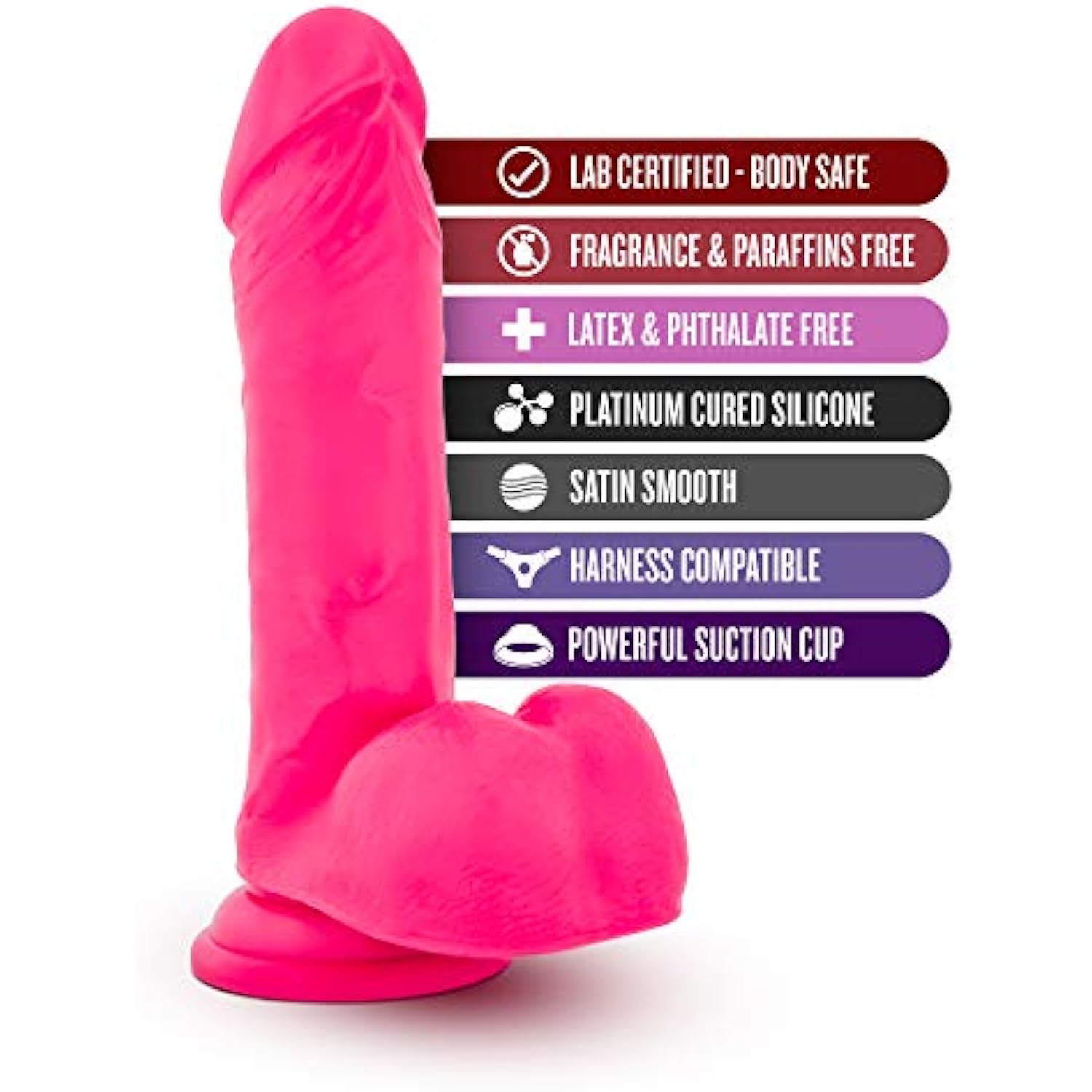 Ruse Big Poppa - 8 Realistic Dildo Premium Purio Platinum Cured Silicone - 1.5 Thick - Luxury Ultrasilk - Strap On Compatible Sturdy Suction Cup For Hands Free Play - Hot Pink