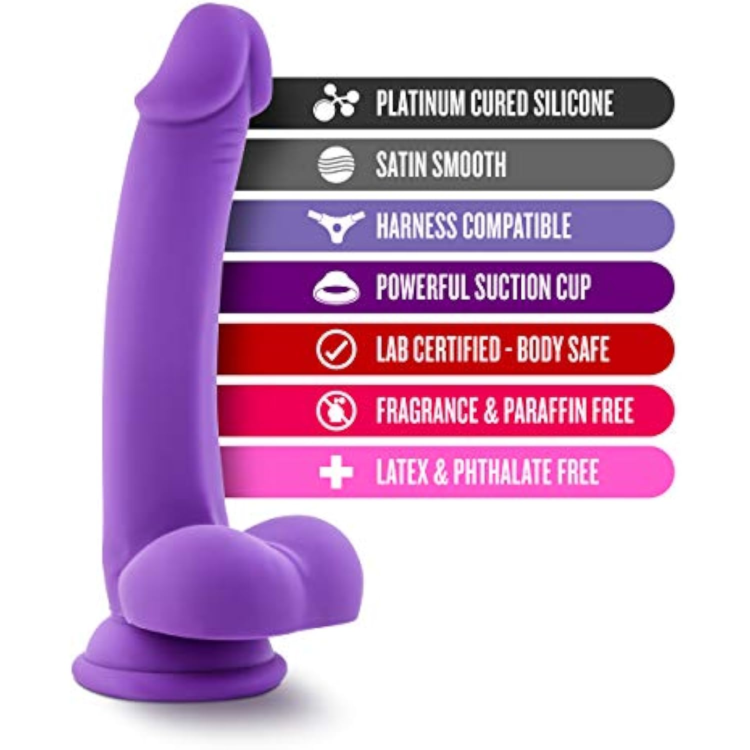 Ruse D Thang, 7.75" Platinum Cured Purio Silicone Dildo, Satin Smooth Ultrasilk 1.25" Shaft, Strap-On Compatible, Suction Cup Base For Hands-Free Play, Adult Toy For Women - Purple