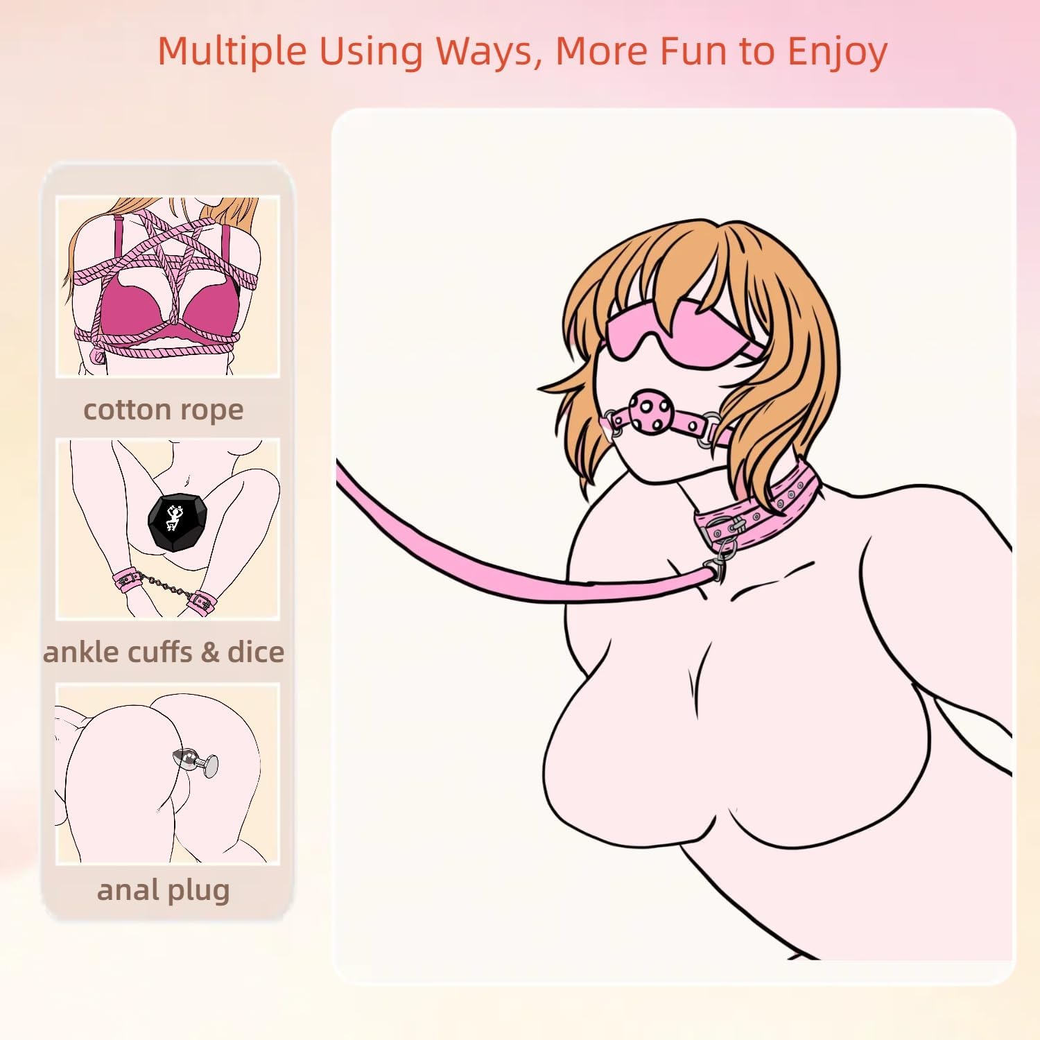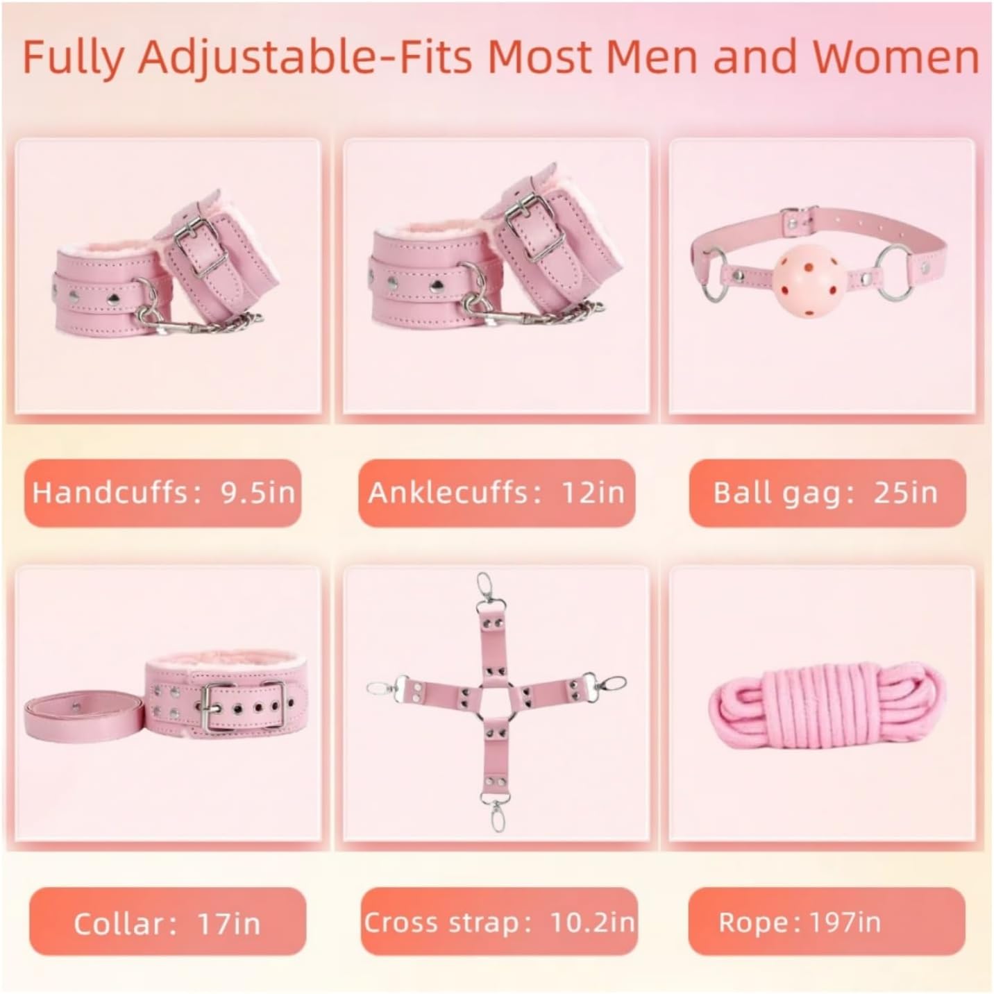 12-Piece Bondage Restraint Kit – Adjustable BDSM Set for Beginners (Pink)