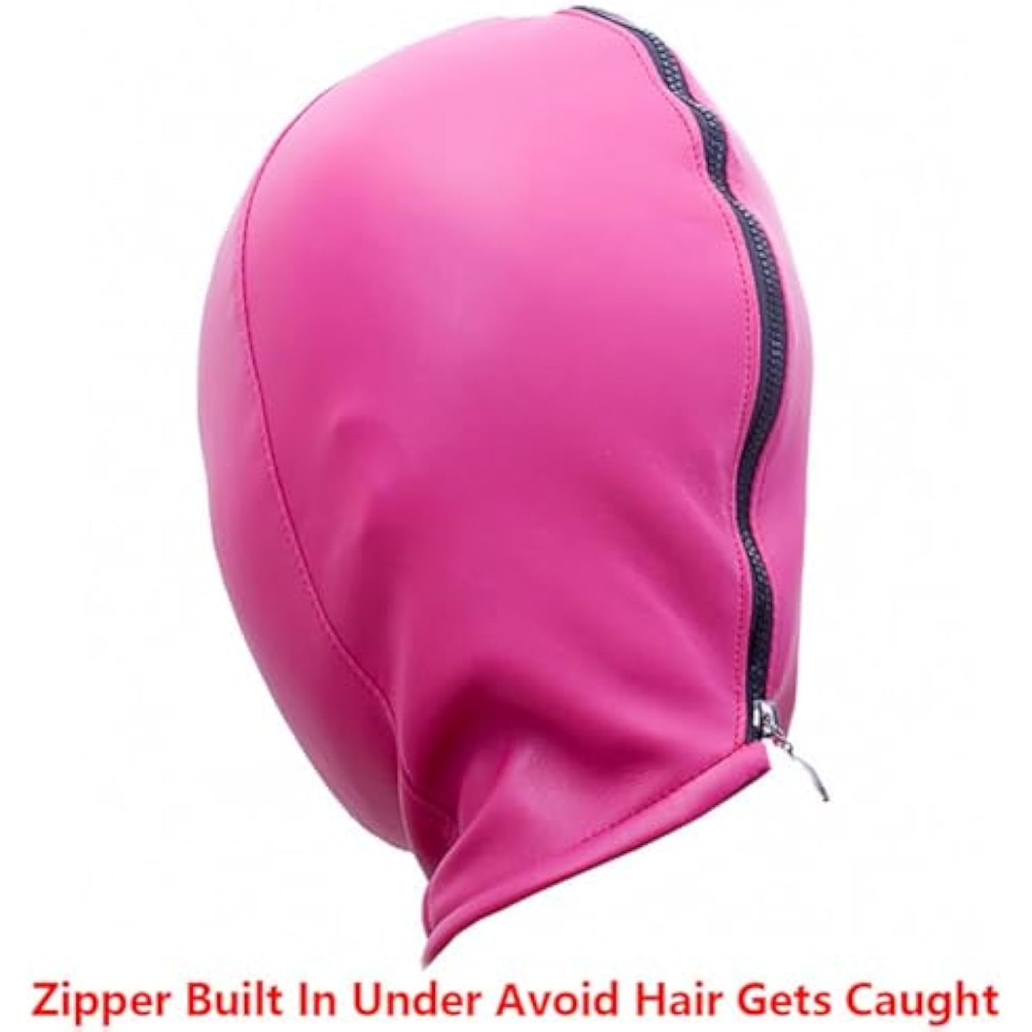 Sealed Leather Zipper Breathable Hood - Sex Slave Pup Training Sealed Hood Restraint Blinder Bondage Helmet Sexual Game Wear For Bdsm Fetish Lover (23 Inches Round, Purple)