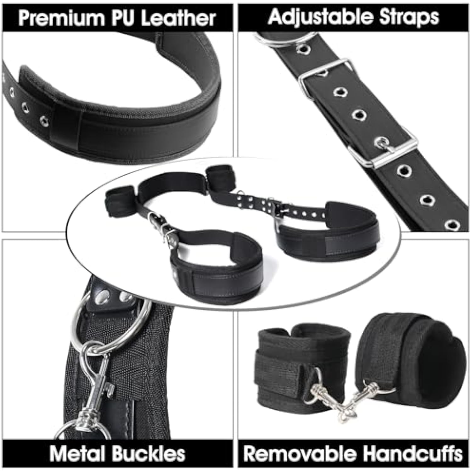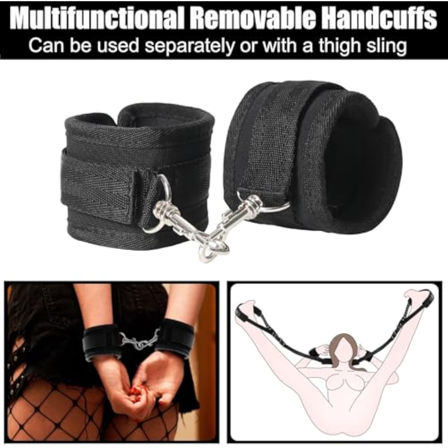 - Deluxe Leather Thigh Sling: Sex Bondage Set With Beautiful Appearance And Long-Lasting Performance Adds Some Spice To Your Bedroom, Enhance Your Intimate Moments. Wrists Are Securely Cuffed Beside Neck And The Padded Thigh Support Keeps The Legs In Plac