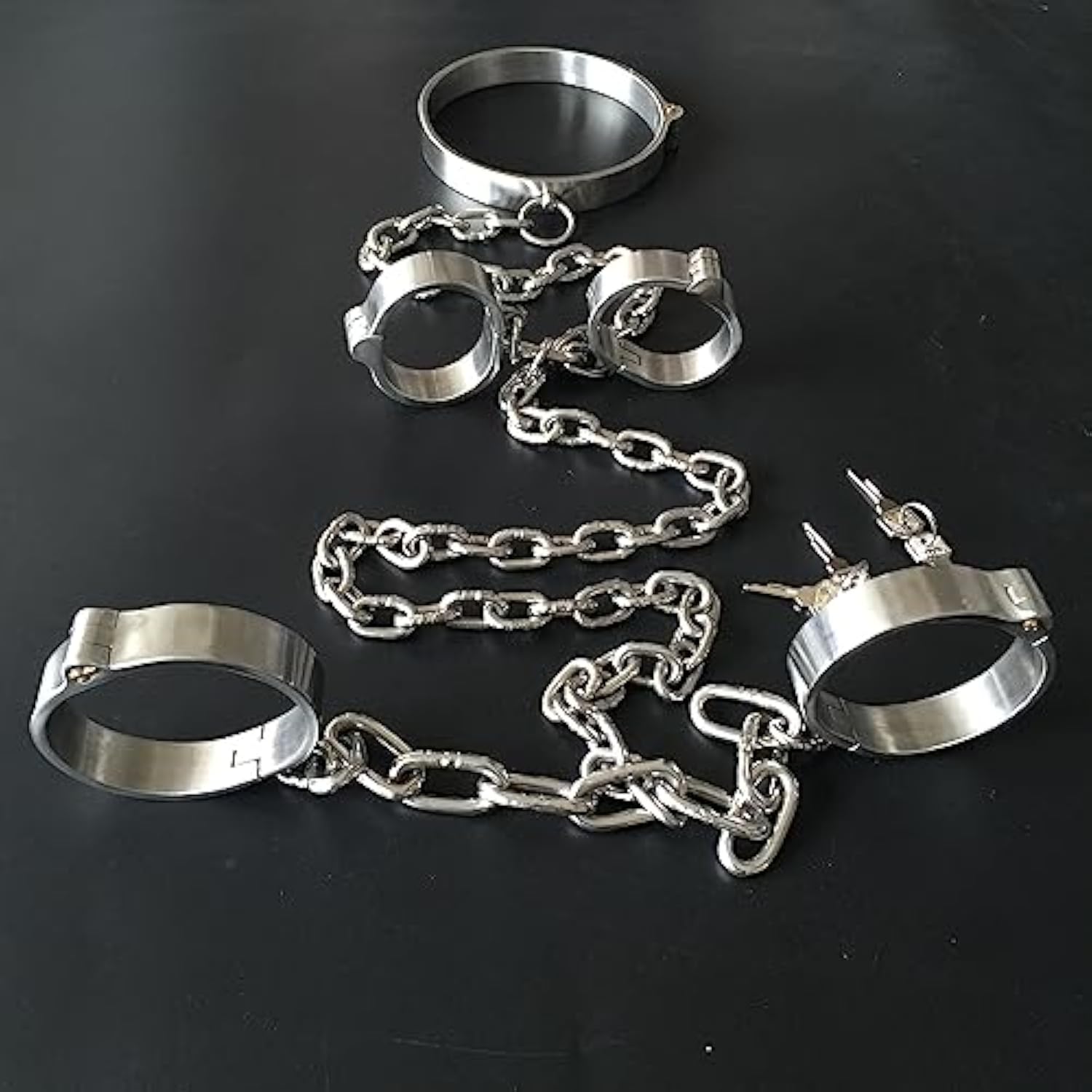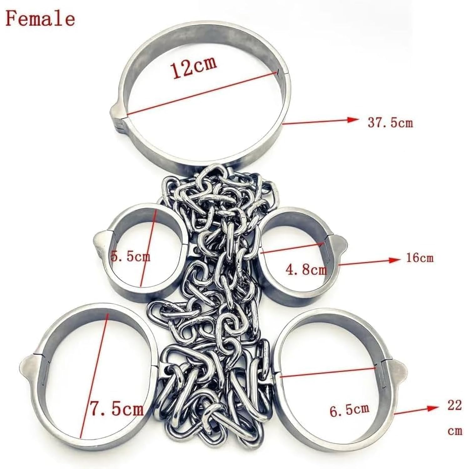 Sex Bondage Bdsm Kit Sexy Slave Stainless Steel Lockable Wrist Handcuffs&Ankle Shackle&Collar Chain Restraints Set Adult Sex Toys Couple Supplies ? (Male)