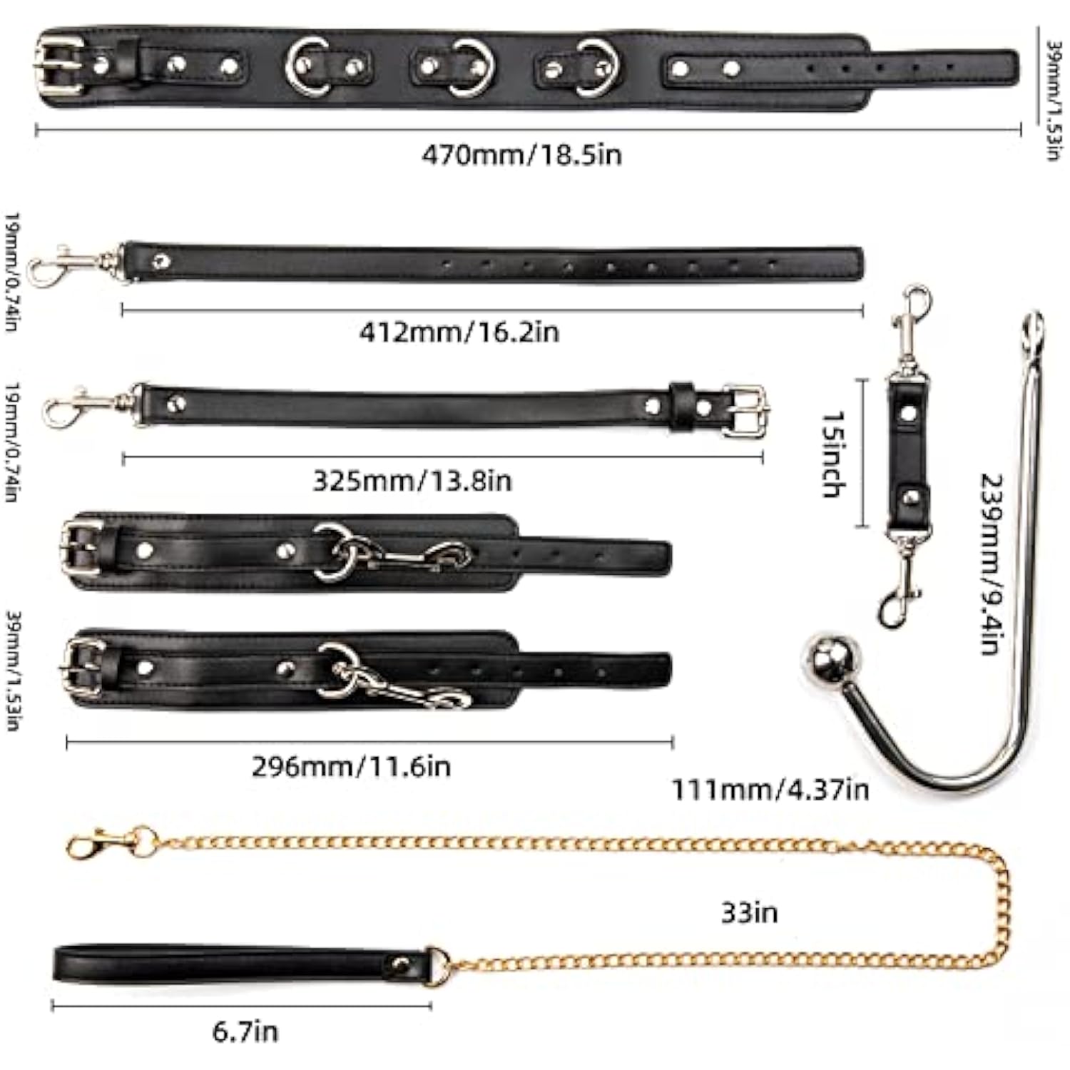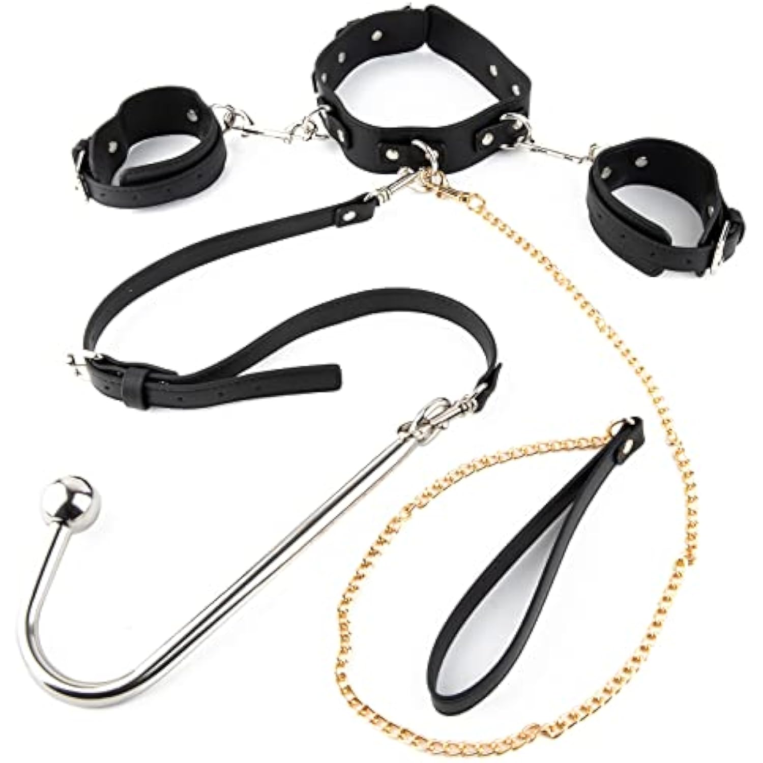 Sex Bondage Bdsm Kit With Anal Hook And Ball, 3-In-1 Adjustable Collar Binding Leather Binding Set Binding Set, Including Anal Hook, Traction Chain Handcuffs, Chain Binding Band Neutral Sm Sex Toys