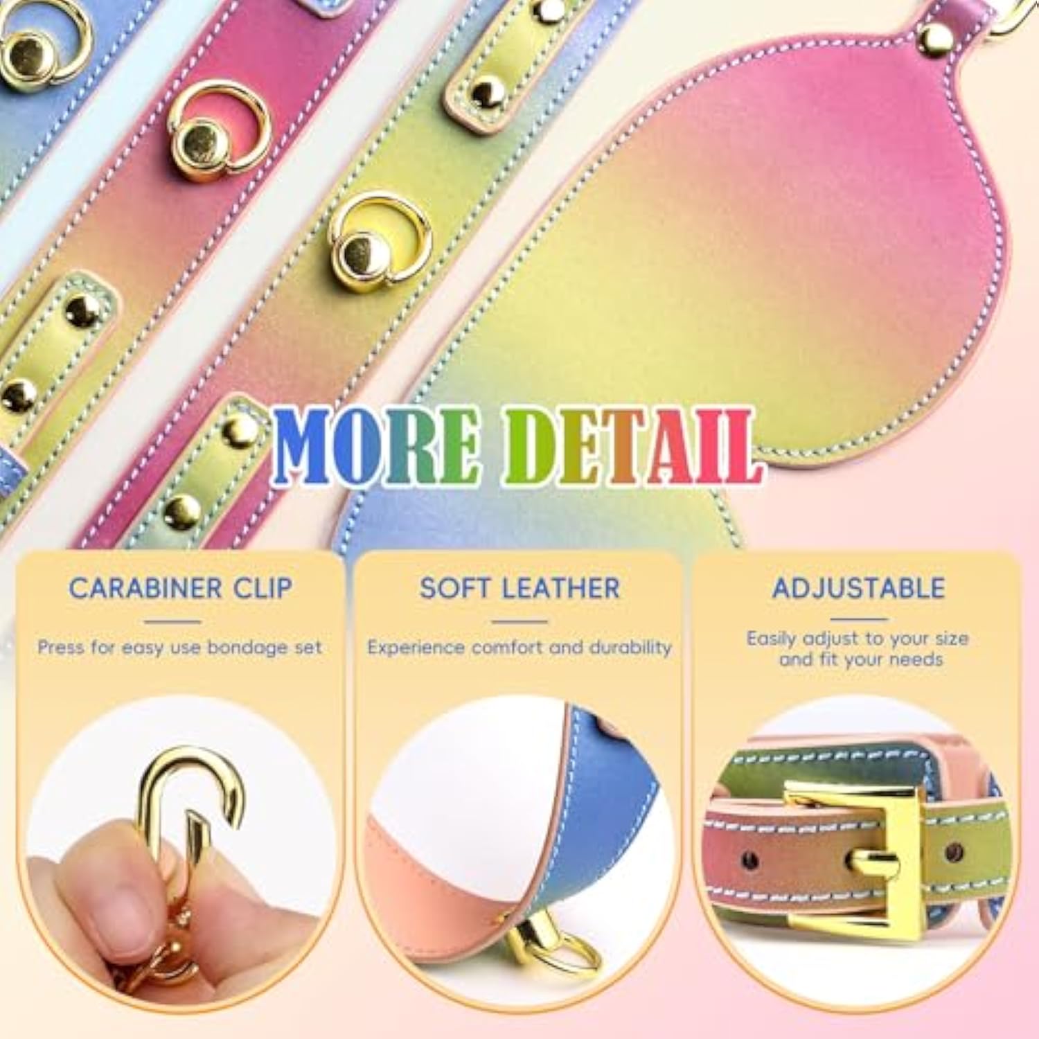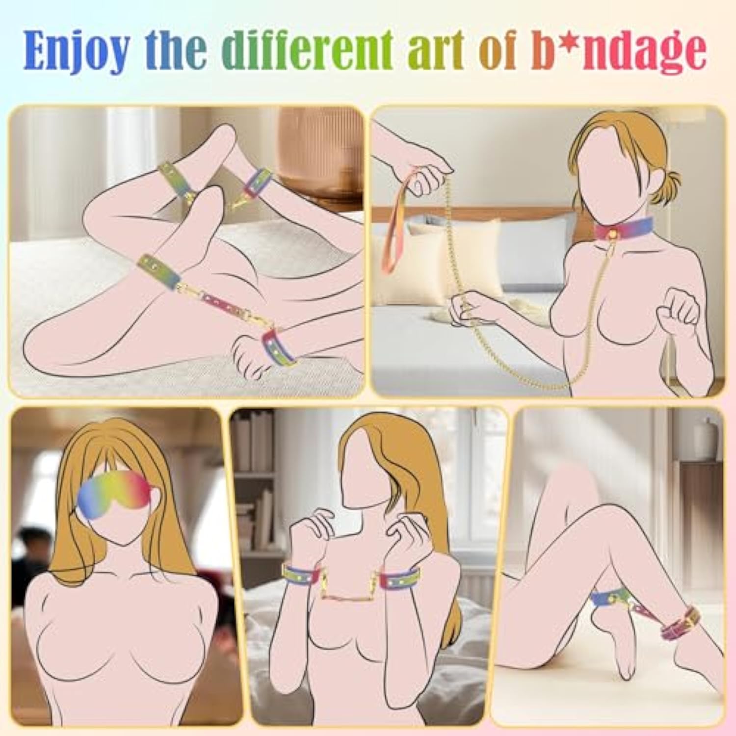 | When You Need To Get The Deepest Parts Of Your Desires Met, Use This Ultimate Colorful Leather Bdsm Restraints Set! Wrist And Ankle Cuffs To Restrain Your Lover. Cross Strap Link All The Cuffs For Even Kinkier Play. Collar And Traction Chain Turn Your Lover Into Your Servant. Blindfolds Enhance Additional Senses For Even More Intense Play | | Annoyed By The Lack Of Rainbow Colors In Bondage Gear Not Anymore! Not Only Do 'S Bdsm Sets Allow For Ankle-To-Ankle, Ankle-To-Wrist, And Many Other Creative Bondage Scenarios, But They Also Come In Beautiful Rainbow Colors | | Unleash Your Desires, Embrace Submission! Break Up The Boredom In The Bedroom With These Love Chains And Add Some Spark To Your Love Life! Explore Each Other'S Naughty Sides. Perfect For Couples Who Want To Try Something New And Exciting. Take Turns Role Playing, One Minute You'Re In Control, The Next You'Re At Your Lover'S Mercy! Experience The Thrill Of Bondage And Live Out Your Deepest Fetish Fantasies | | This Sex Toys Kit Is Sure To Be Great Fun For Beginners And Great For Experienced Sm Lovers Too. Who Wouldn'T Want A Bondage Kit Enjoy Tying, Pleasing And Teasing Your Lover While They'Re Bound, Tied And Blindfolded! Try It Once And They'Ll Be Begging For More | | ’S Couples Sex Bondage Toys Restraint Kit Will Be Delivered To You In Discreet Packaging. You Can Take It Along With You For Traveling And Enjoy More Erotic Romantic Anytime Anywhere With Your Partner. Travel Sex Toy. Sex Toys Bdsm Bondage Restraints. Sex Toys For Women | |