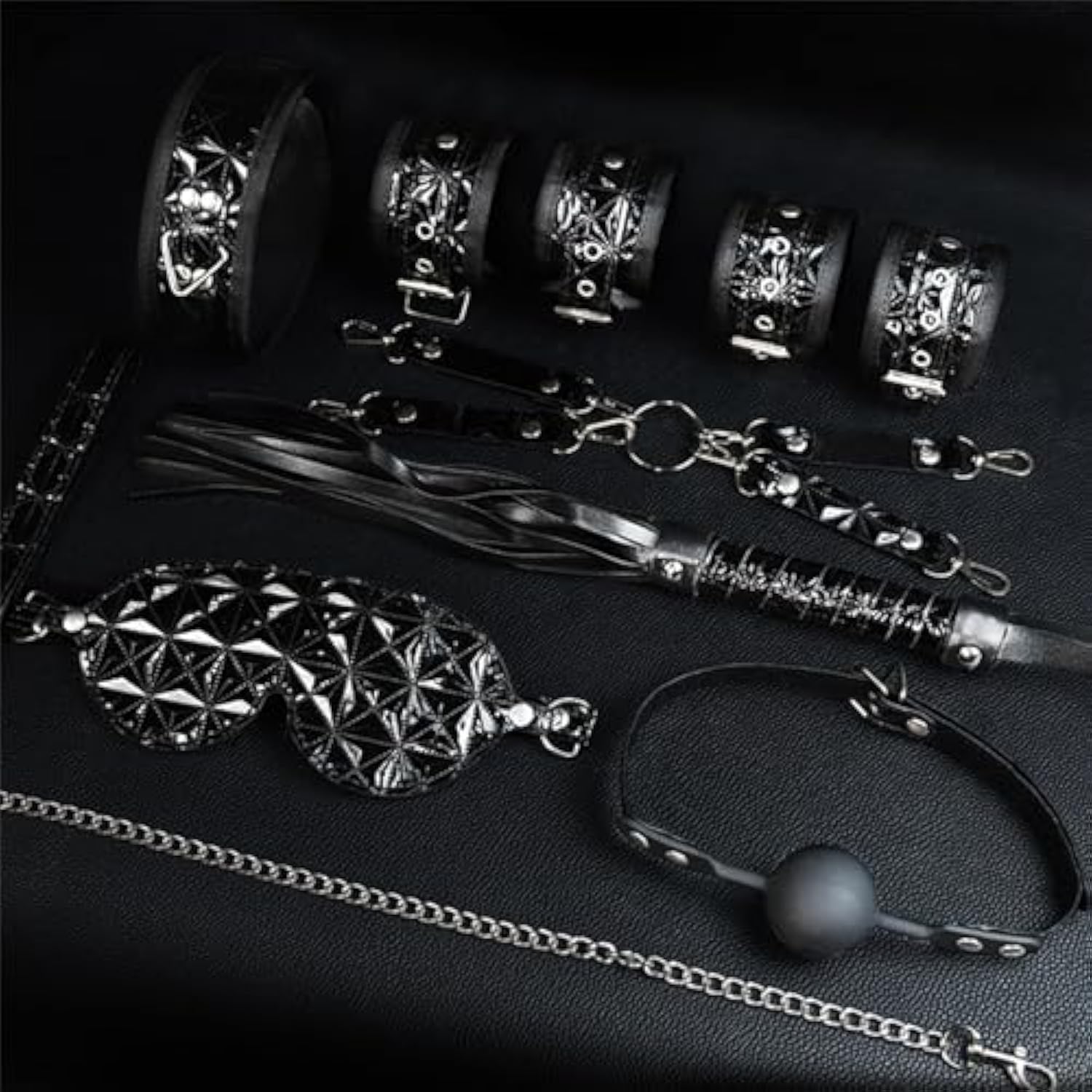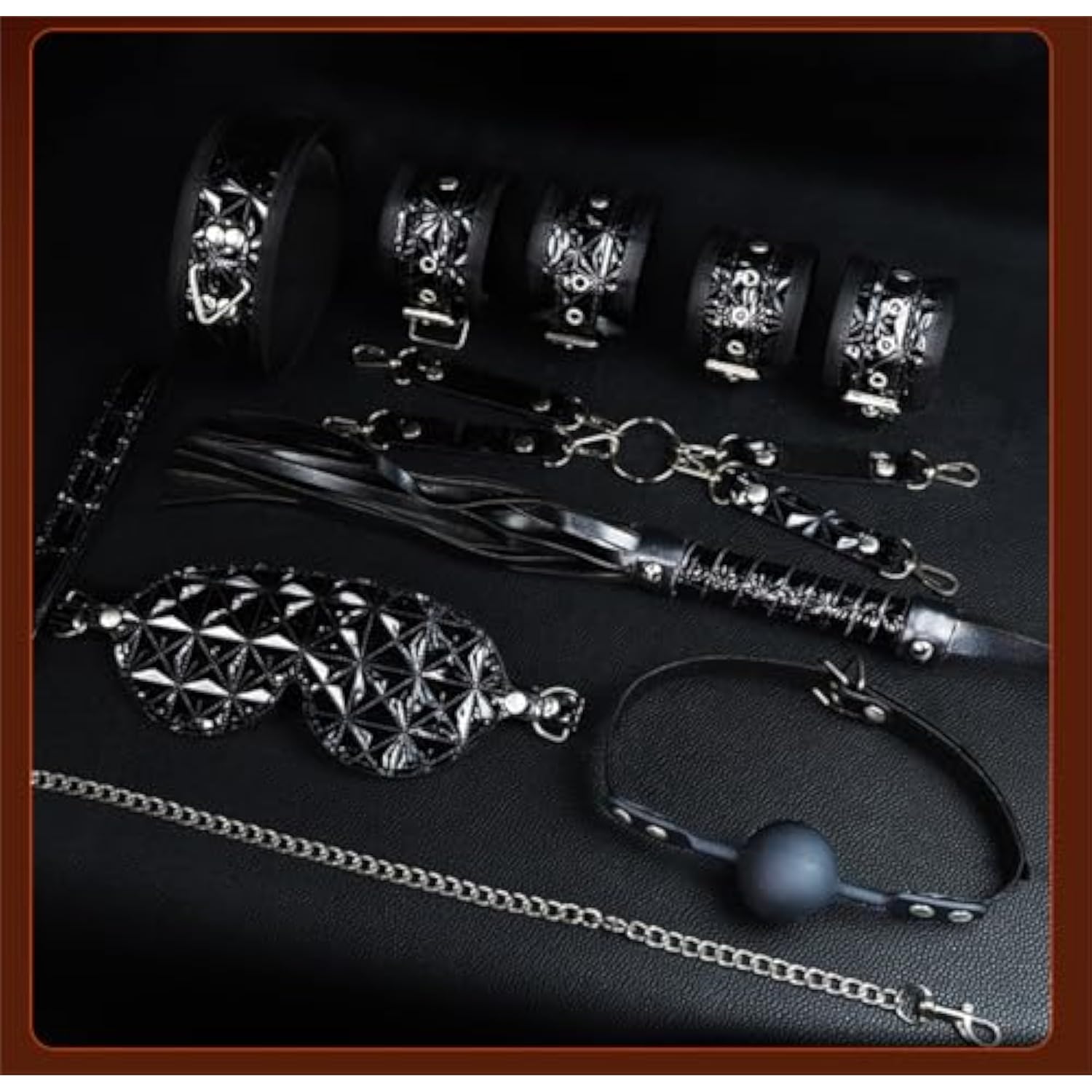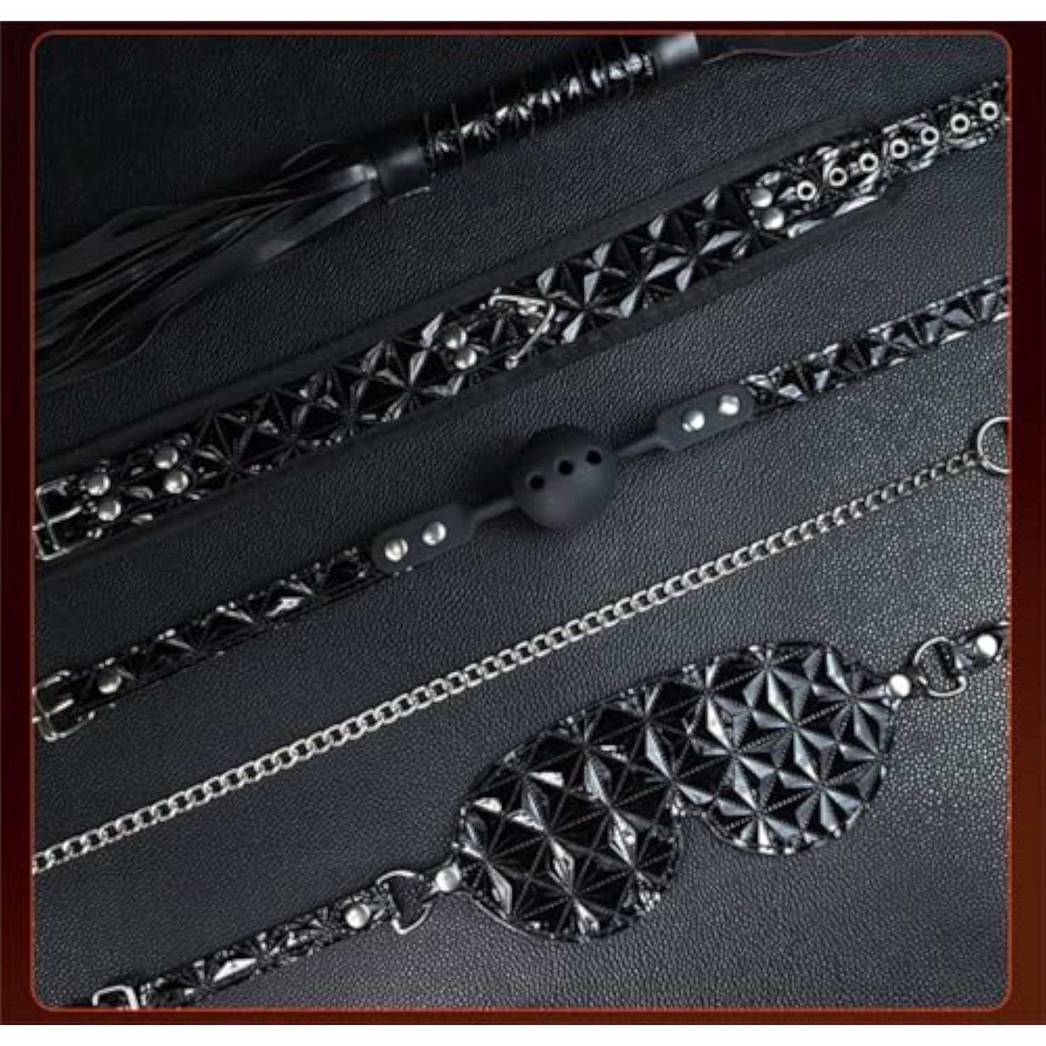 - Bondage Gear Accessories: 1.Sex Cuffs 2.Sex Ankle Restraints 3.Sex Whip 4.Traction Chain 5.Ball Gag 6.Collar 7.Cross Strap 8.Sex Blindfold