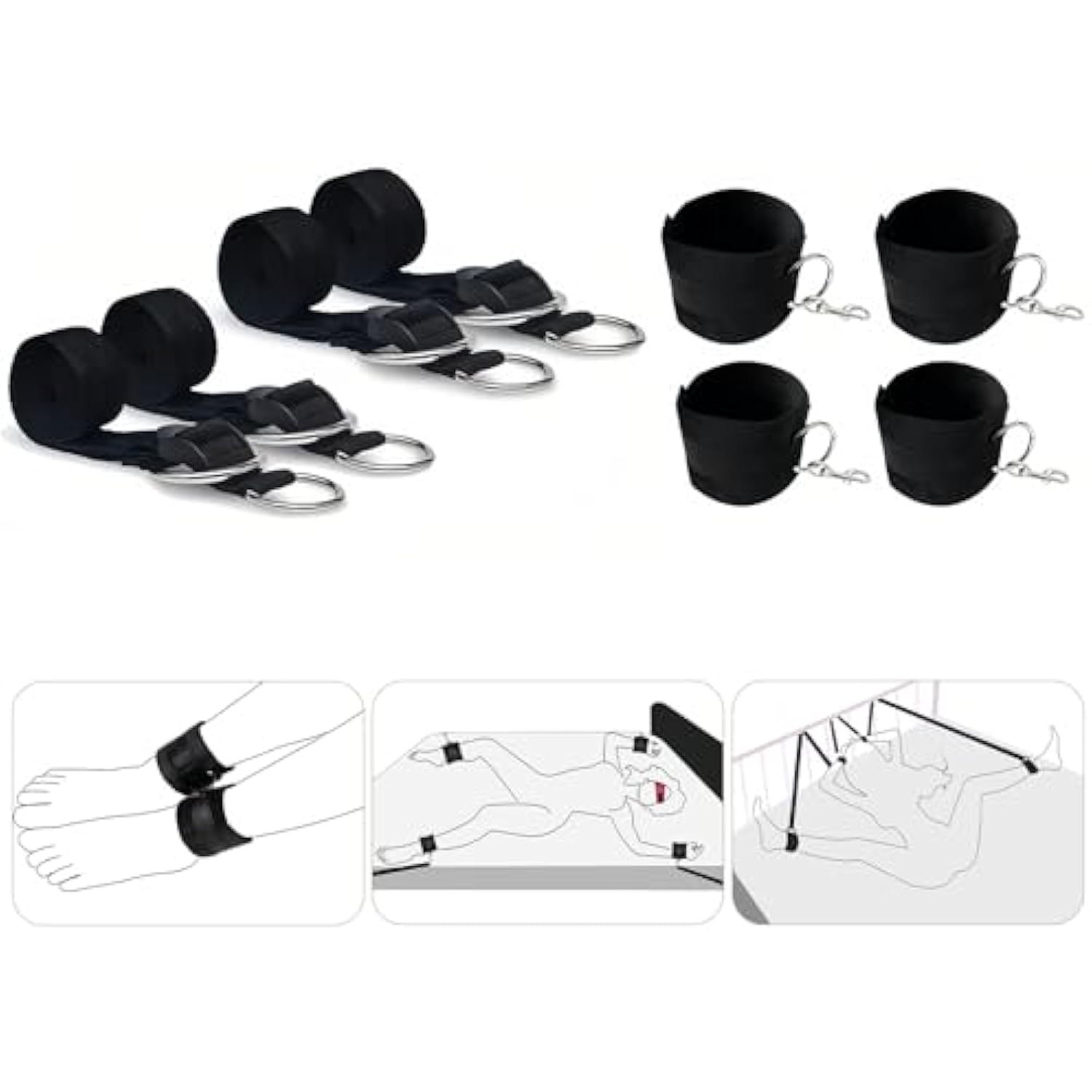 - 8Pcs Bed Bondage Restraints Bdsm Kit - This Sex Bondage Set Contains Adjustable Straps*4, Cuffs*2, Blindfold*1, Feather Tickler Paddle*1. The Complete Bdsm Sex Toys Set Is Also Featured With Multiple Using Ways, Such As Separately Body Bondage Play, Bed