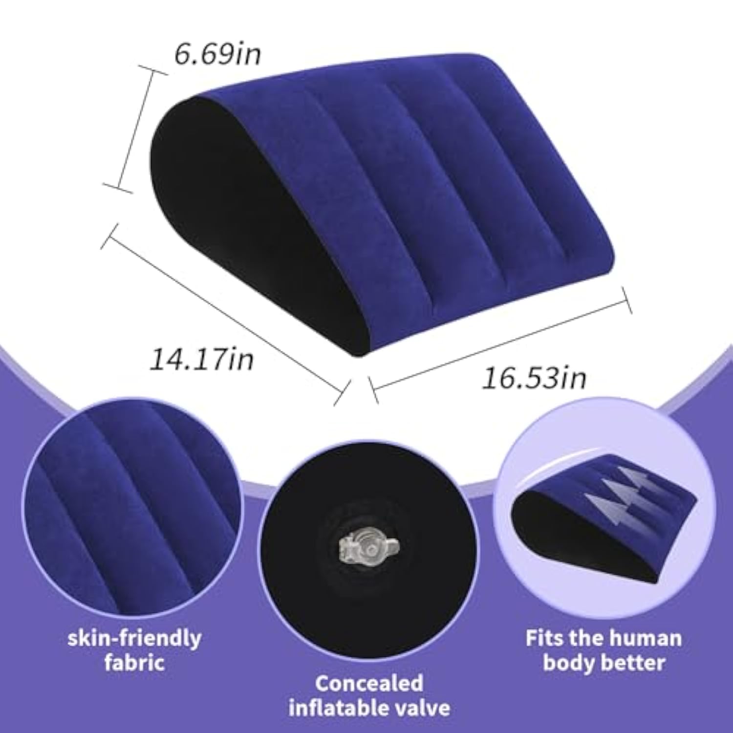 | This Pillow Uses Soft Comfortable Pvc Flocking,It Is Extremely Resilient And Velvety Soft On The Skin Without Sticking Or Slipping. It Can Be Cleaned Directly Or With A Wet Wipe. | | Enhance Your Experience By Using Our Wedge Cushion In Different Ways To Suit Your Needs. The Support Cushion Prevents Fatigue And Pain Caused By Holding The Same Posture For A Long Time. | | The Pillow Is Designed To Provide Intense Orgasms For Both Partners. | | Its Lightweight Design Makes It Easy To Carry With You Wherever You Go, So You Can Enjoy Intimate Moments No Matter Where You Are. | | Our Pillow Is Foldable And Easy To Inflate Even Without A Pump. It Is Also Ideal As A Travel Pillow, Neck Pillow For Travel, Support Pillow For Your Back Or As A Backrest For The Sofa. | |