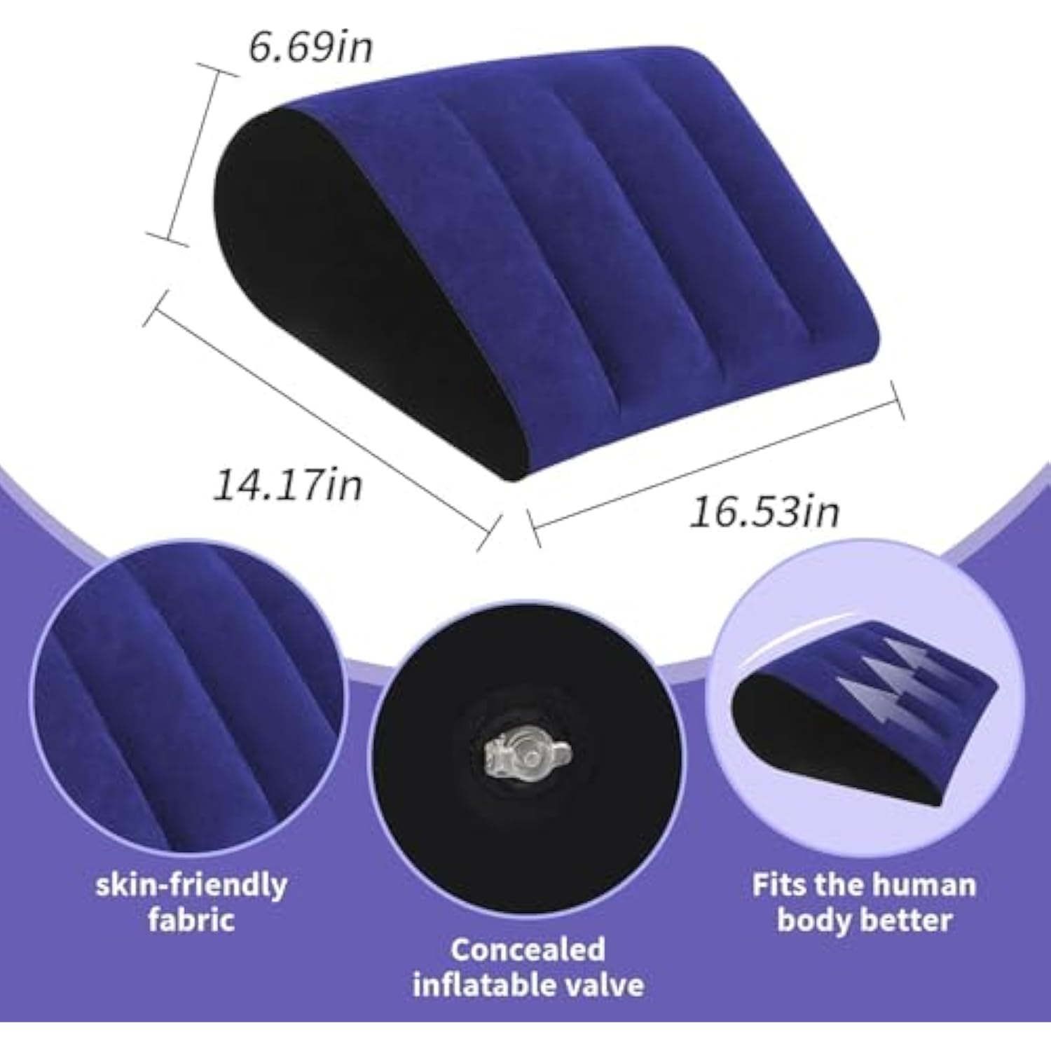 | This Pillow Uses Soft Comfortable Pvc Flocking,It Is Extremely Resilient And Velvety Soft On The Skin Without Sticking Or Slipping. It Can Be Cleaned Directly Or With A Wet Wipe. | | Enhance Your Experience By Using Our Wedge Cushion In Different Ways To Suit Your Needs. The Support Cushion Prevents Fatigue And Pain Caused By Holding The Same Posture For A Long Time. | | The Pillow Is Designed To Provide Intense Orgasms For Both Partners. | | Its Lightweight Design Makes It Easy To Carry With You Wherever You Go, So You Can Enjoy Intimate Moments No Matter Where You Are. | | Our Pillow Is Foldable And Easy To Inflate Even Without A Pump. It Is Also Ideal As A Travel Pillow, Neck Pillow For Travel, Support Pillow For Your Back Or As A Backrest For The Sofa. | |