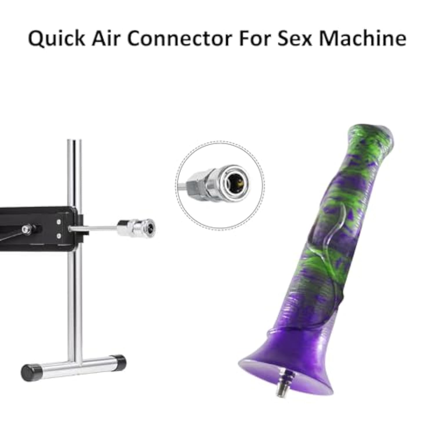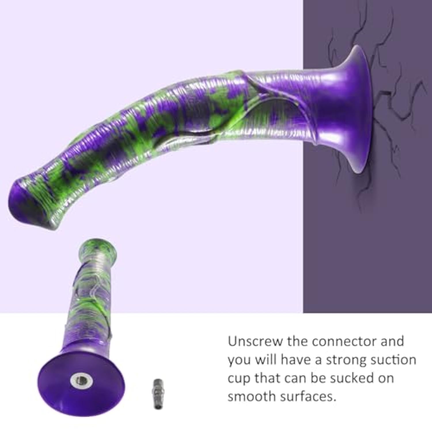 | Sex Machine Adapter:If You Have A Sex Machine, This Dildo With Quick Air Connector Is Perfect For Your Automatic Insertion Sex Play.(Please Confirm The Interface Before Purchase) | | Powerful Suction Cups: After Rotating And Unscrewing The Attachment Connector, You Can Enjoy The Toy Alone. It Attaches To Any Smooth Surface. | | Unique Design:The Head Design Of This Dildo Is Inspired By A Horse. The Colors Are A Purple And Green Mix, Giving You A Unique Dildo. | | Silicone Dildo: It Is Made Of Silicone, Not Too Soft And Not Too Hard. Odorless And Non-Greasy Material. | | Size?This Dildo Is 11.8 Inches Long And 2 Inches Wide. | | Discreet Packaging: All Products Come In Discreet Packaging And Keep Your Privacy Strictly Confidential. | |