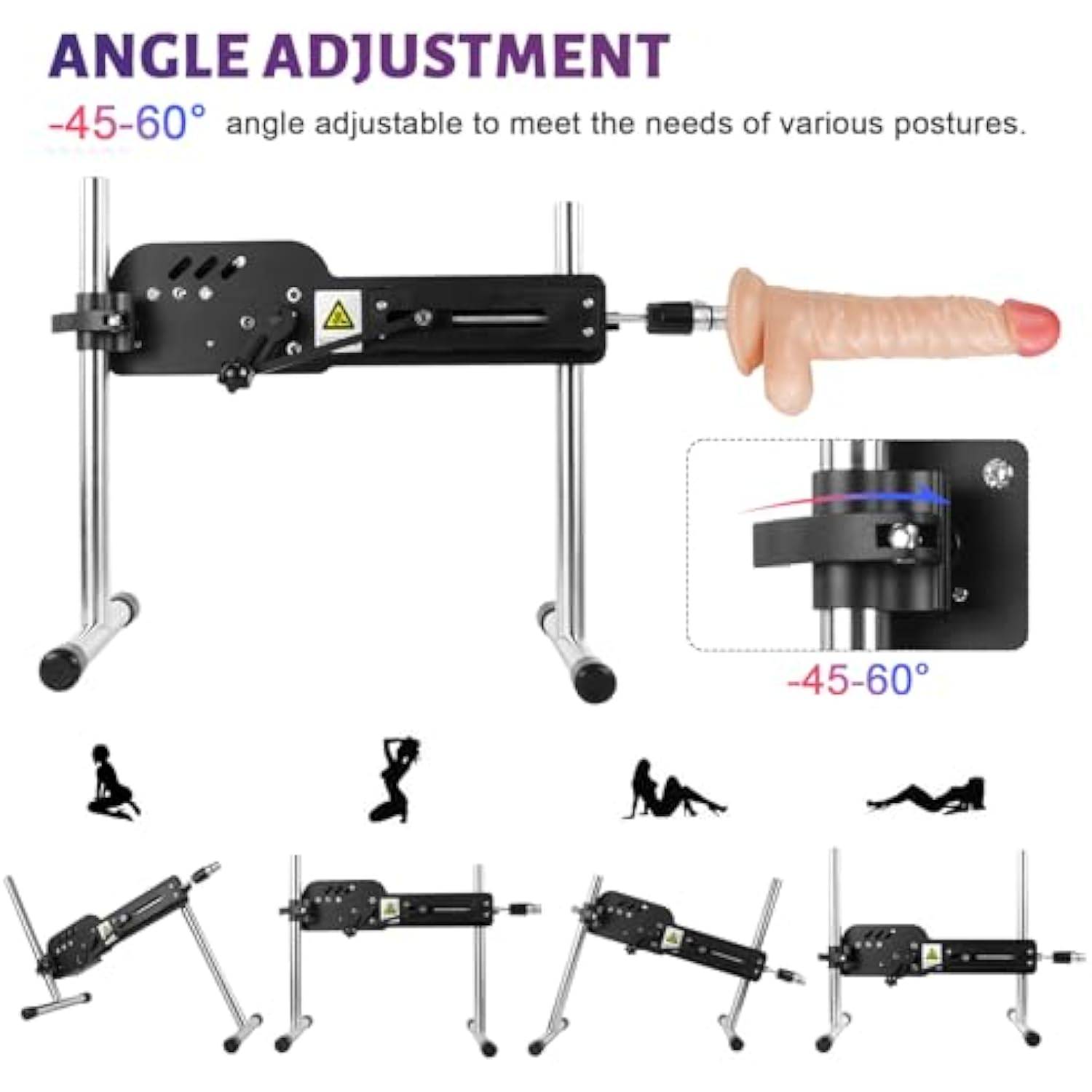 - Angle Adjustment: The Sex Machine Can Be Adjusted To Different Angles And Positions Between -45-60 Degrees, Macth The 3Xlr Connector Sex Toys, You Can Explore More Positions From Different Angles And Try Different Angles Of Experience.