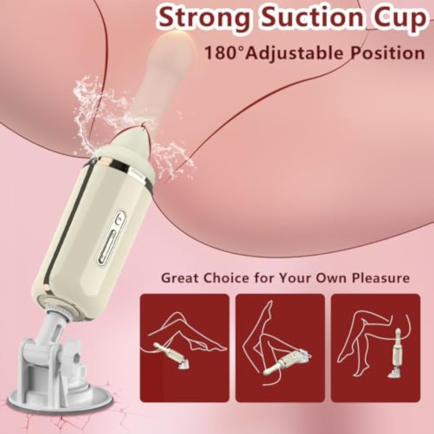- Powerful Suction Cup Premium Quality Silicone!! Solidly Adsorbed Base Of Sex Machine Thrusting Dildo Vibrator Locks Securely To Any Flat, Smooth Surface And Adjusts The Angle 180° So You Can Experience The Pleasure Of Freeing Your Hands. From Bathroom Doors To Bedroom Headboards, Your Deepest Desires Are Now Being Realized. The Upgraded High Quality Silicone Is Smooth And Super Skin-Friendly, You Just Have To Experience Our Thrusting Dildo To Know How Good It Feels On Your Skin.