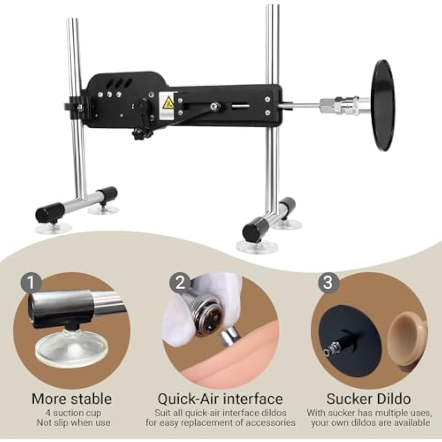 - Secure And Stable Design: The Automatic Thrusting Machine Includes 4 Powerful Suction Cups With Upgraded Anti-Slip Technology, Ensuring Stability During Use. This Prevents Any Displacement Or Vibration, Providing A Secure Foundation For Intense Sessions. Comes Discreetly Packaged With 3 Realistic Dildos And Compatible Suction Cups For Diverse Play Options