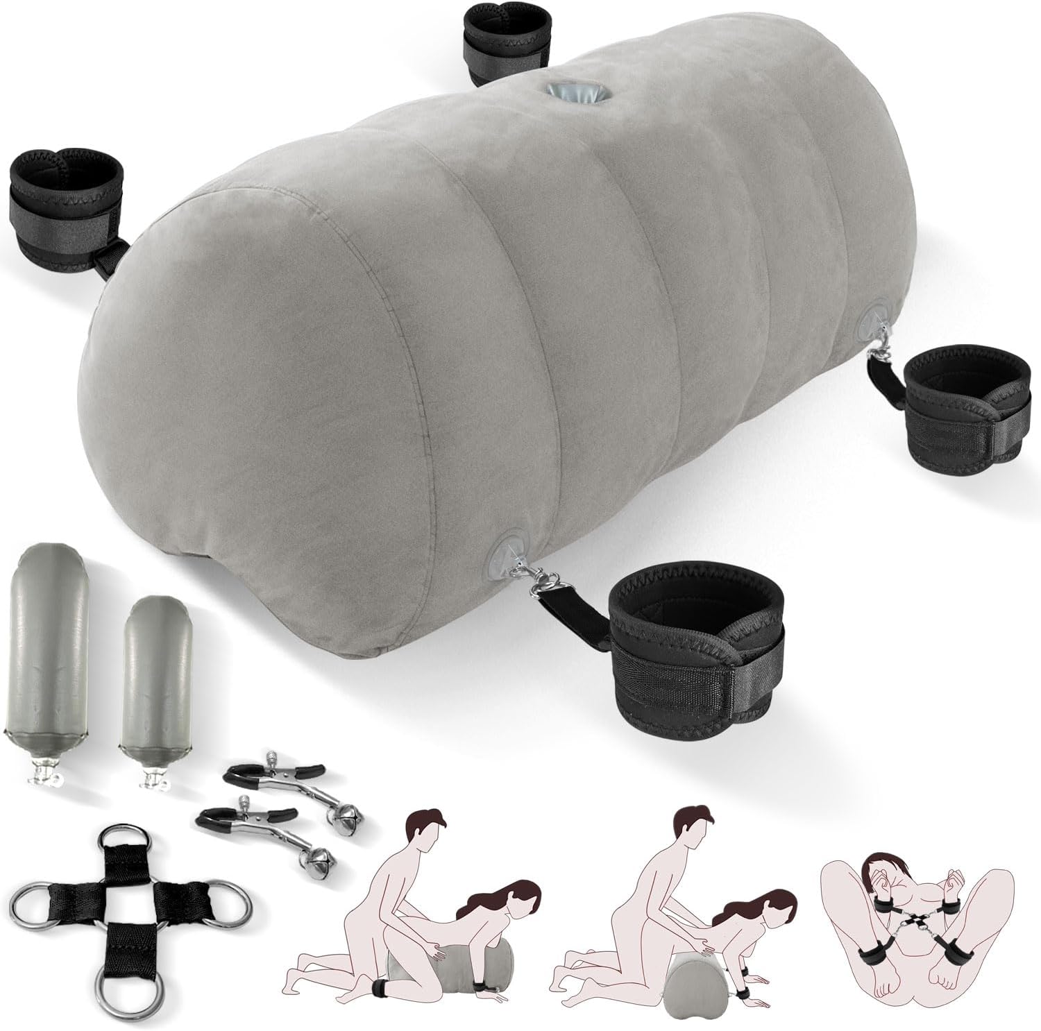 Adjustable Inflatable Position Pillow with Bondage Cuffs & Toy Mount