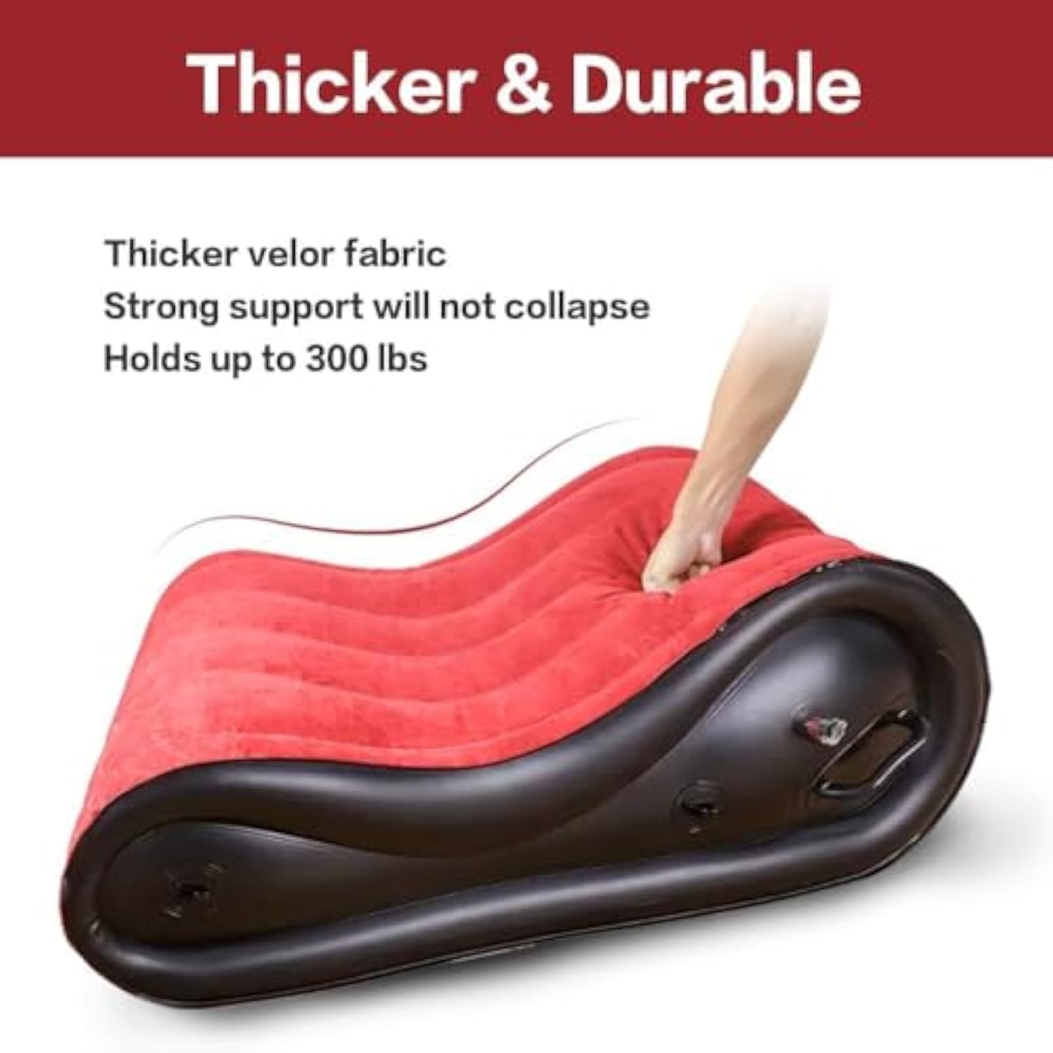 | Better Angle Selection:With The Help Of This Sex Couch, You Can Unlock More Positions,Providing An Unprecedented Deep Penetration, Making It Easy To Reach Climax, And Experiencing Indescribable Pleasure. | | Comfortable Material: The Soft, Velvety Surface Material Collides With Your Bare Skin, Instantly Amplifying Your Sensory Experiences And Igniting Your Passion.Non-Slip Material To Prevent It From Slipping, To Promise That Your Whole Body Could Be In A Fatigue-Relieved Status When You Lie On It. | | Thick Durable: This Sex Toy Pillow Is Made From High-Quality, Thick Materials And Features An Upgraded Air Seal Valve. It Can Support Up To 300 Lbs With Strength And Stability, Ensuring It Won’T Collapse. The Air Seal Valve Allows For Easy Inflation And Deflation. Additionally, It Is Foldable, Lightweight, And Portable, Making It Ideal For Use At Home, Outdoors, At Parties, Or While Traveling For Added Enjoyment. | | Versatile Support: This Inflatable Sex Pillow Goes Above And Beyond By Providing Gentle Lift And Support For Your Head, Back, Knees, Legs, Buttocks, And Feet. Lightweight And Compact, It’S Easy To Store And Becomes Your Versatile Companion For A Wide Range Of Activities, From Travel To Beach Outings And More. | | Portable: If You'Re Looking To Use It Beyond The Home, This Inflatable Product Is The Perfect Choice. It'S Lightweight And Easy To Carry, Allowing You To Enjoy Exceptional Pleasure Even In Outdoor Settings Or On The Go. | |