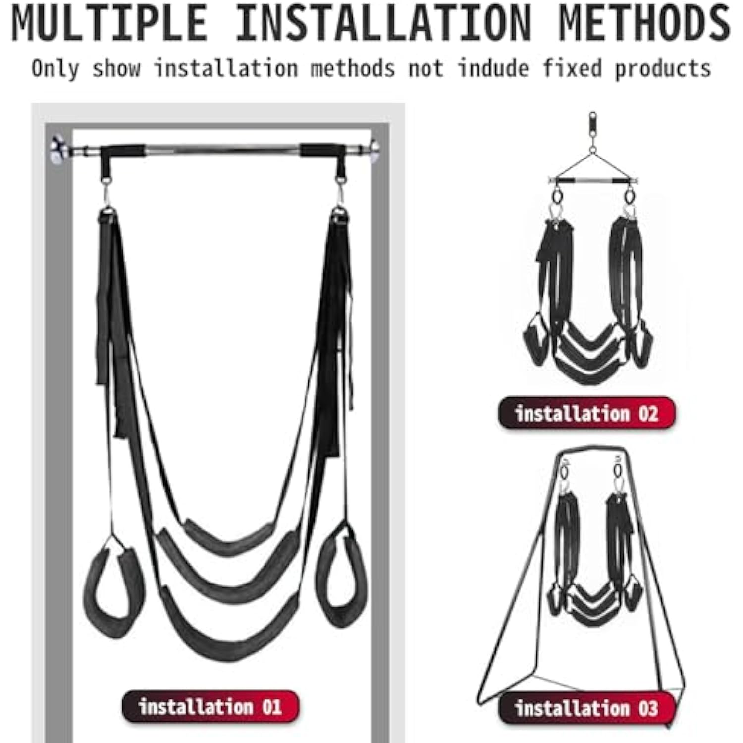 - Easy Installation: This Sex Swing Is Easy To Use. You Just Put The Part Over Position Where It Can Hang With The Hooks And The Places Where Forces Can Be Applied. You Can Simply Put The Tubes Over A Door(Tubes Not Included) . You Can Hang The Swing To The Hanging Rods (Not Included) As Well As The 360° Tripod (Not Included) Ensure Your Safety, So That You Can Fully Indulge In Your Love Play When Properly Installed.