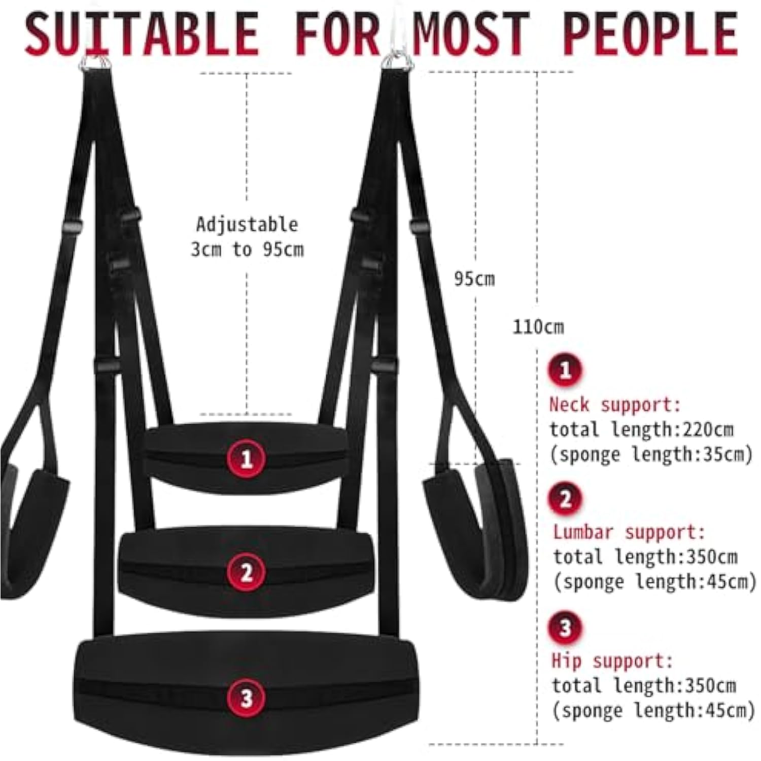 - Adjustable Sex Slings For Any Size: The Straps Of The Sex Swings Are Fully Adjustable, Which Can Conveniently Fit Over Couples Of Any Strength, Height, And Weight The Ability To Try Many Kinds Of Position, Allowing You To Set Up Your Play Space Quickly And Easily.