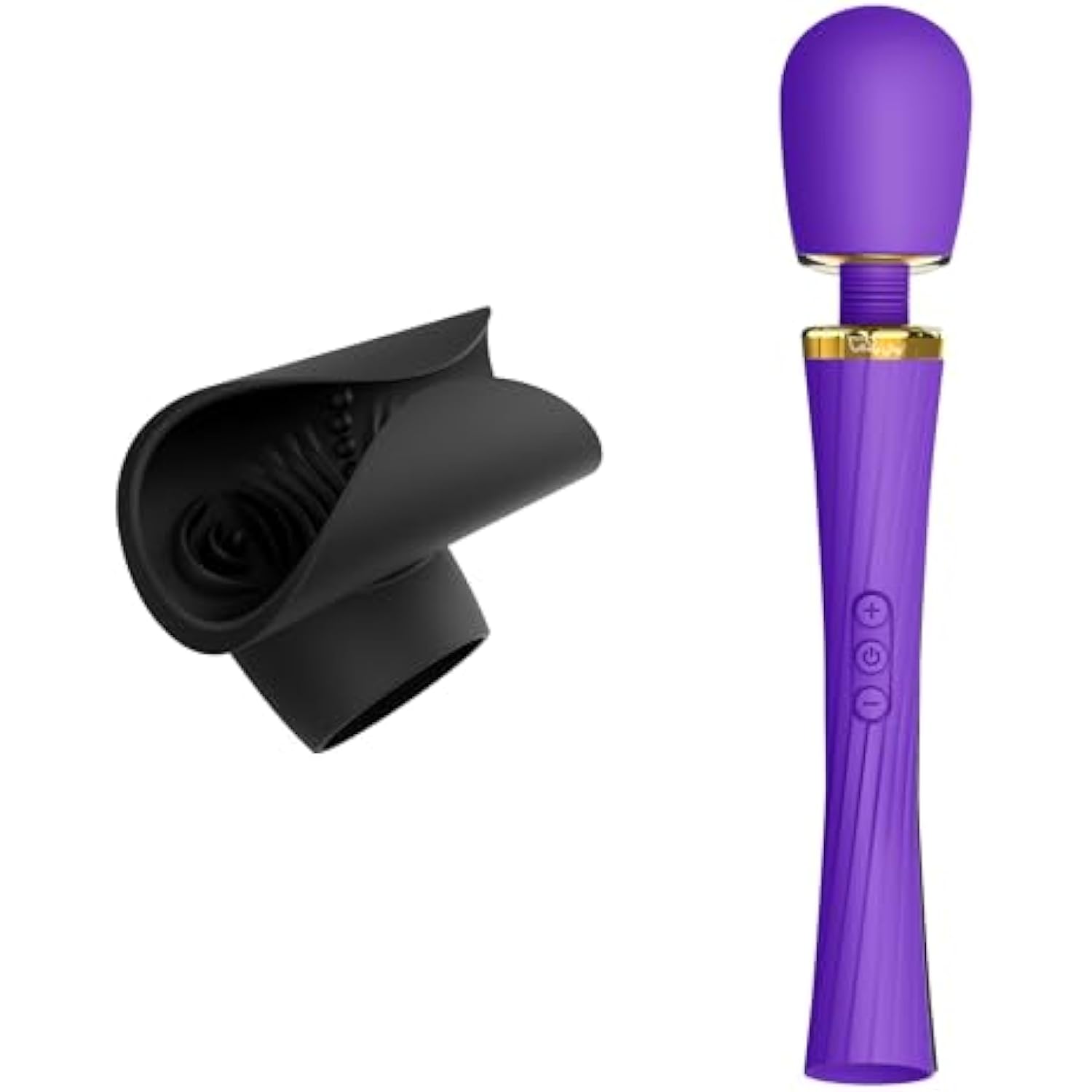 Sex Toy Bundle - Hammer Wand Vibrator Purple & Penis Play Attachment, Body-Safe Silicone, Waterproof